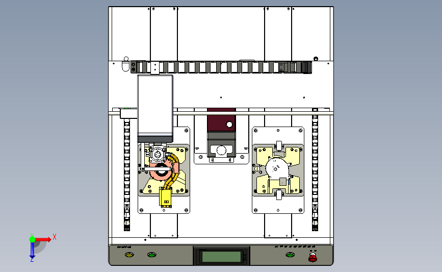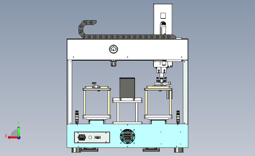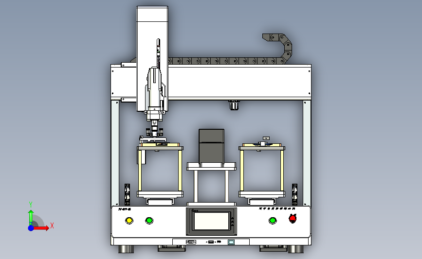 人工上料自动锁螺丝装置:采用双工位进行上下料,通过横移机构横移上料,采用自动拧紧装置拧紧,机械工程师可以做个参考,结构新颖,中间数模文档保存,欢迎下载。