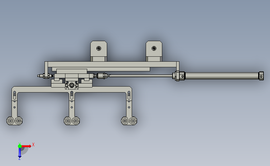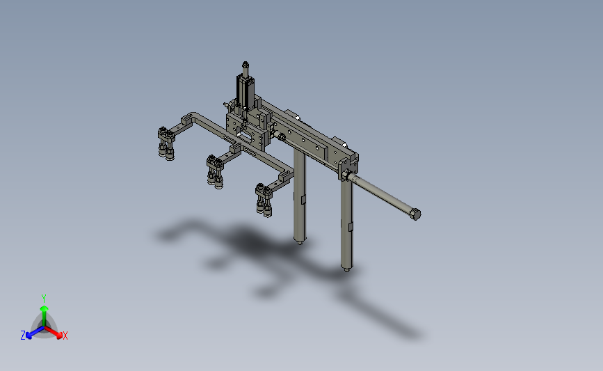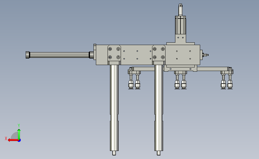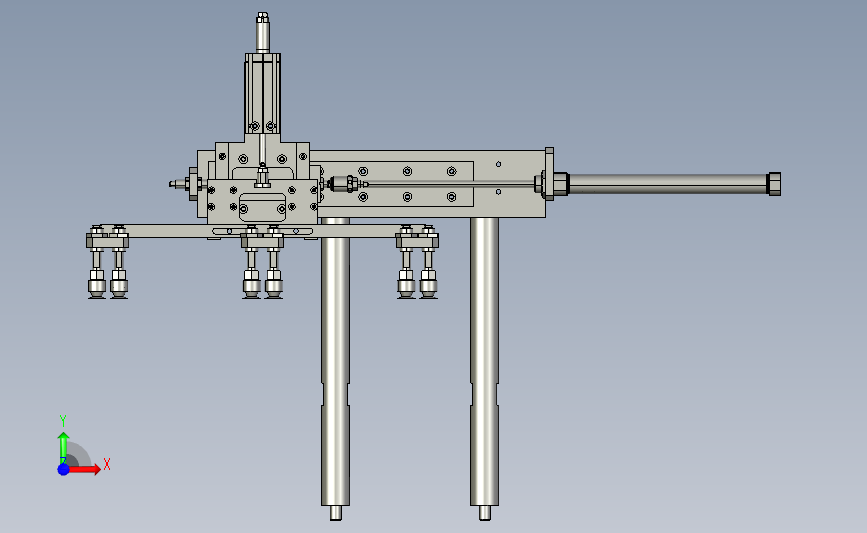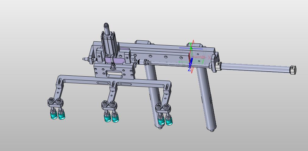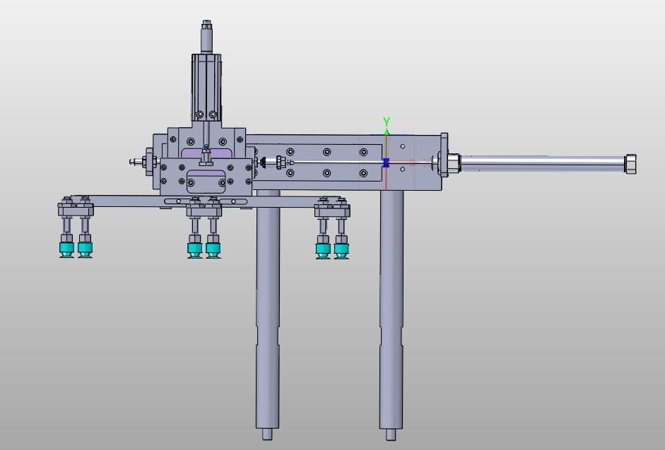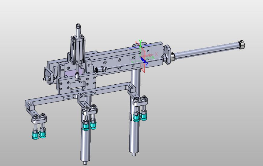 递进式吸盘机械手:通过多组吸盘对应多个工位,通过气缸进行同步前进,从而递进多个吸盘,其形态优美曲线流畅,结构新颖,造型新颖是不可多得的佳作。
