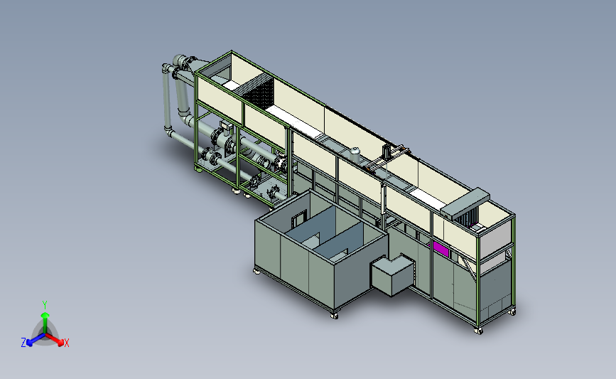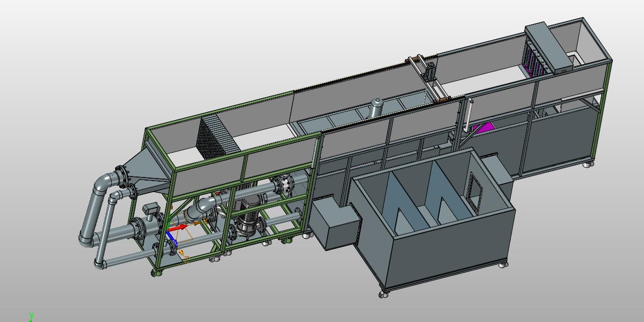 水浪冲击仿真测试设备:设置有大型箱体作为水浪浪箱,通过水泵开关进行模拟水量的大小,实现冲浪模拟,中间格式建模数据更小,可以修改,欢迎各位机械朋友的下载和使用。