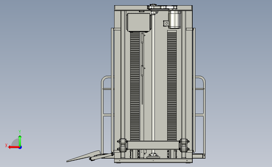 推车货物双柱滚轮丝杆举升升降台:设置有平台进行放置产品,通过侧面的数字双柱进行举升,图纸细节比较多,结构新颖,可以用来修改,可以作为机械设计学员参考使用。