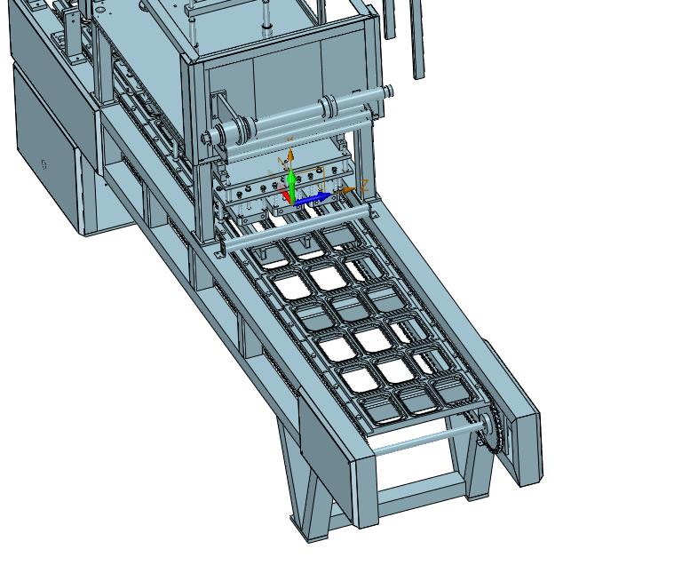 方便盒饭快餐热封封塑料膜机器:链条进行在动工装,上部放置有塑料盒,通过上部的压合模具进行热封,其形态优美曲线流畅,结构新颖,可以修改,适应更多软件,造型新颖是不可多得的佳作。