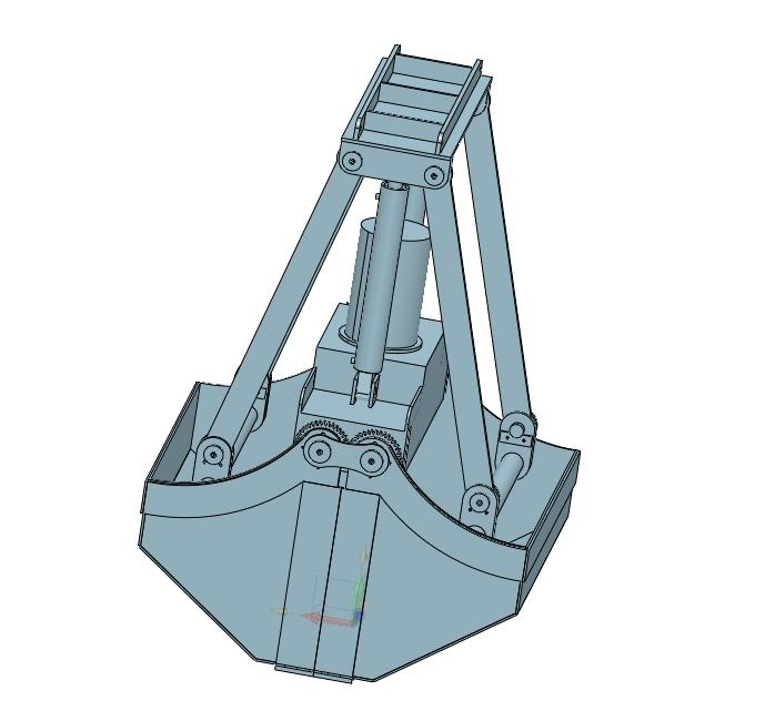 双开贝型挖掘机油缸液压抓斗贝壳斗:内置有油缸进行驱动两侧的齿轮,通过齿轮旋转抓斗,参考价值非常高,可以修改,不含参数,图纸精细,结构新颖,欢迎下载。不能用于商业使用。