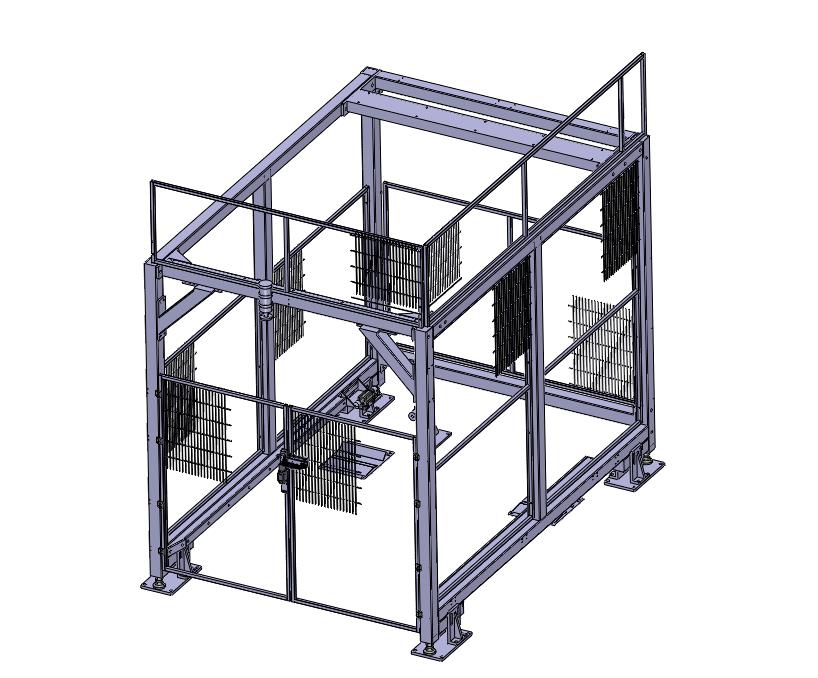 料车上料定位库位带安全门围栏:采用围栏进行防护,设置有导向装置进行定位小车,设置有安全门,中间格式建模数据更小,不能用于商业使用,可以修改,欢迎各位机械朋友的下载和使用。