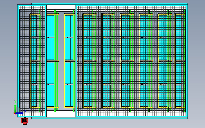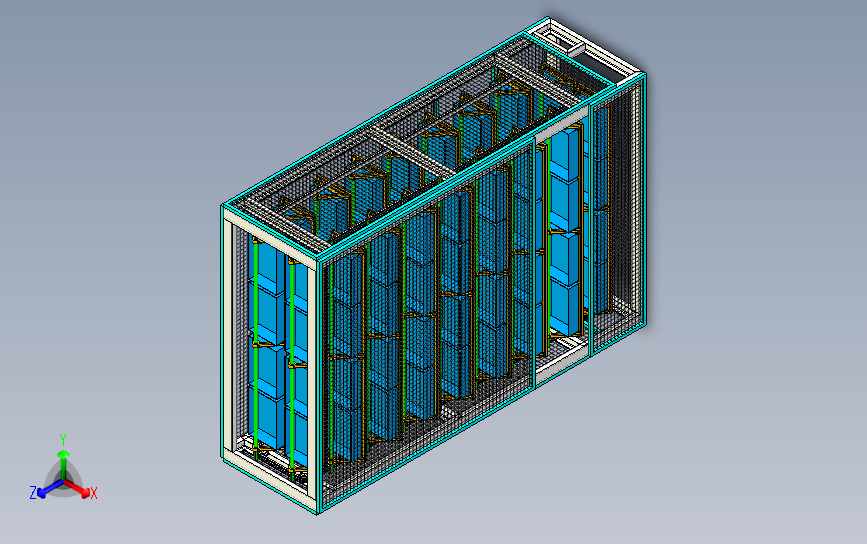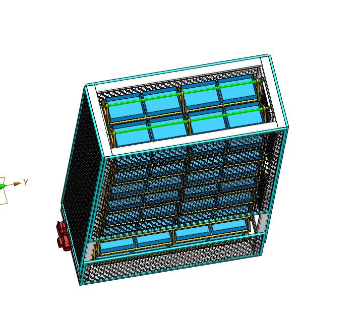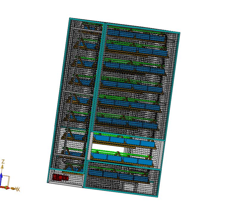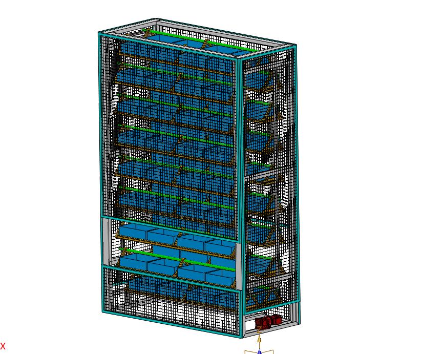 料盒电动循环上下往复存储料架:外置有防护网进行保护,电机驱动链条进行旋转,实现上下料,该模型创建效果逼真,中间格式数模文档保存,适应更多软件,不含参数,可以修改。