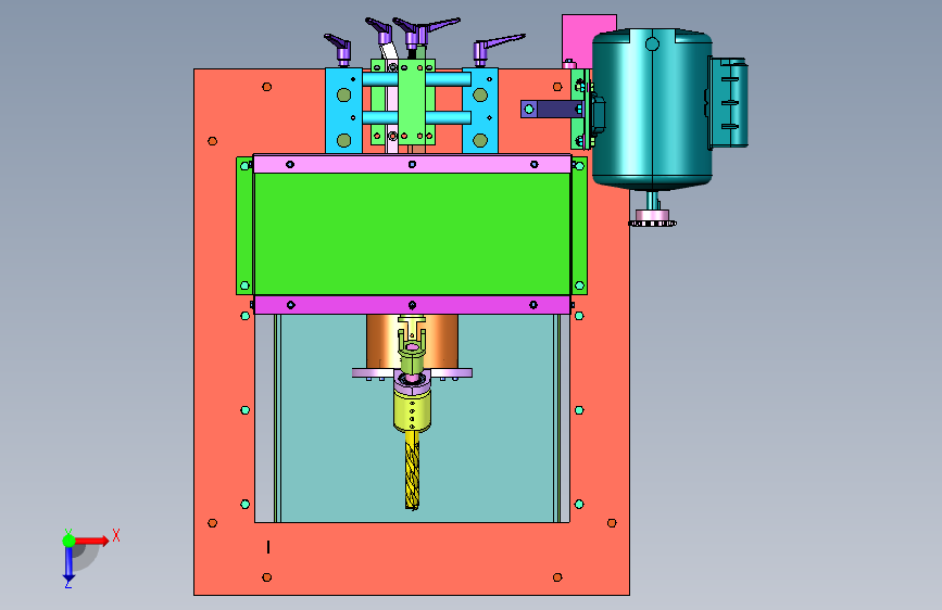 手动送料双倾斜角钻头铣削设备:采用电机驱动齿轮箱子,前部进行放置铣刀,通过倾斜夹具进行传动铣刀,欢迎各位机械同仁的使用,中间的格式建模数据更小,作品尽量细化,不能用于商业使用。