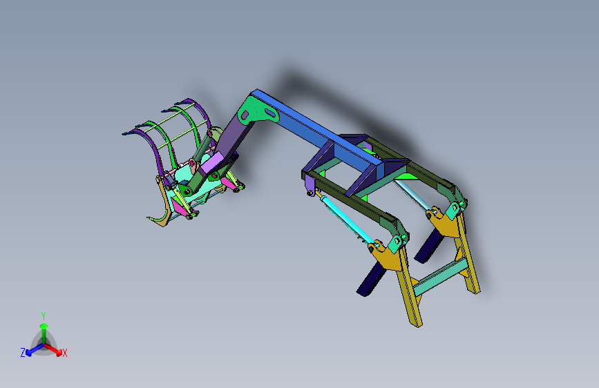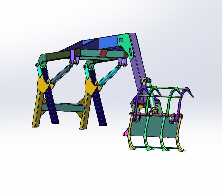 液压装载机360度可旋转树木抓取机:前部的夹爪采用液压进行打开张合,设置有多关节进行运动,结构已经尽量细化,中间格式方便导入各种3d数模软件,有用到的朋友欢迎下载。谢谢。