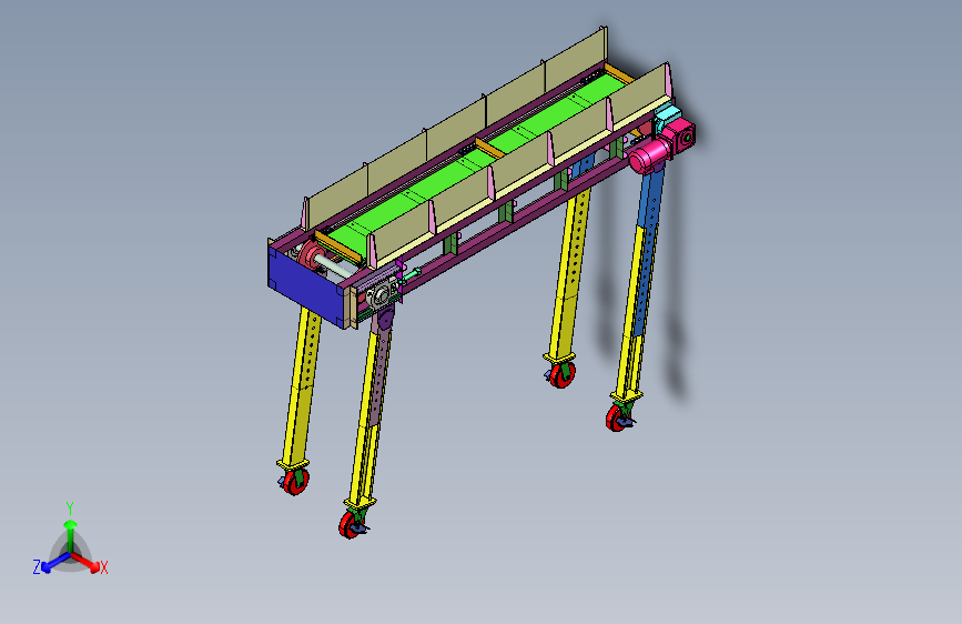 链条连接隔板下覆平板提升输送机:是一种以链条为主要牵引构件、以隔板和下覆平板为承载面的输送机,常用于物料输送、物流输送、仓库搬运等领域。其主要由链条、隔板、下覆平板、驱动装置、张紧装置、支架