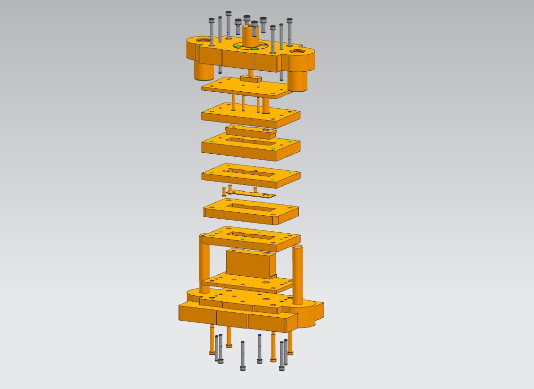 1、选用滑动导向中间导柱160×125标准模架.