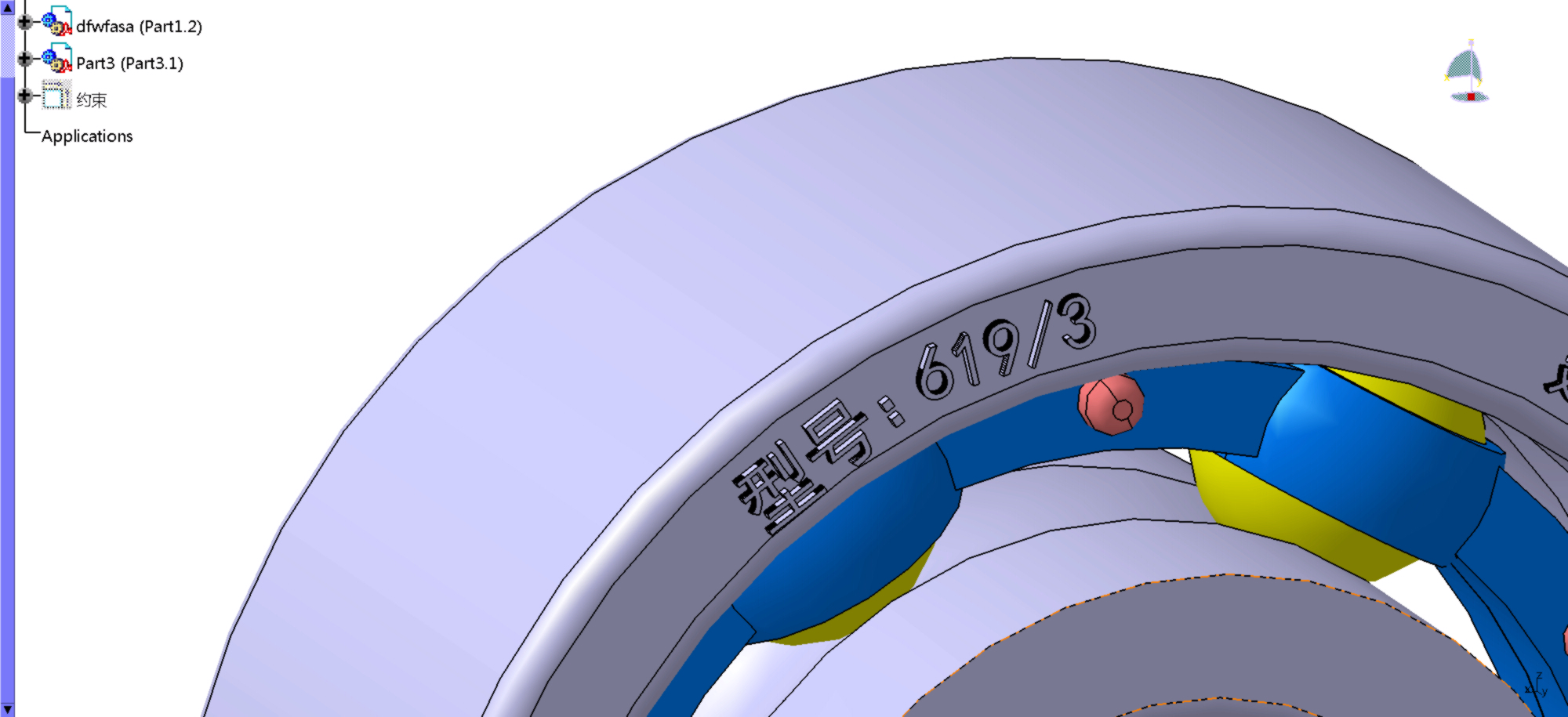 轴承代号:619/3,深沟球轴承,外径D=8mm;内径d=3mm;厚度B=4mm;根据GB/T276-1994标准尺寸建模,基础型深沟球轴承的轴承代号是由数字组成,没有字母后缀,表示轴承没有防尘盖;轴承代号后面有字母后缀Z的,表示一侧有防尘盖,后缀为2Z或ZZ,表示轴承两侧有防尘盖。标准深沟球轴承的组成由轴承内环、轴承外环、钢珠保持架、钢珠组成。压缩文件内有CATIA和step两种格式。