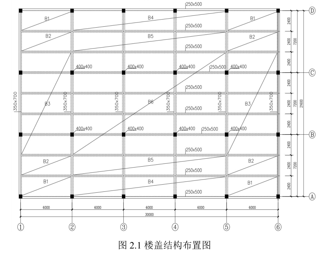 单向板肋梁楼盖设计(30x21.6米)(ID:963554)