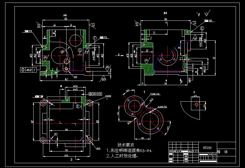 箱体机械加工工艺及夹具设计[铣前后侧面+钻侧面6-M6孔和32孔端的3-M6孔+镗轴承孔32孔]【8张CAD图纸+文档】(ID:975761)