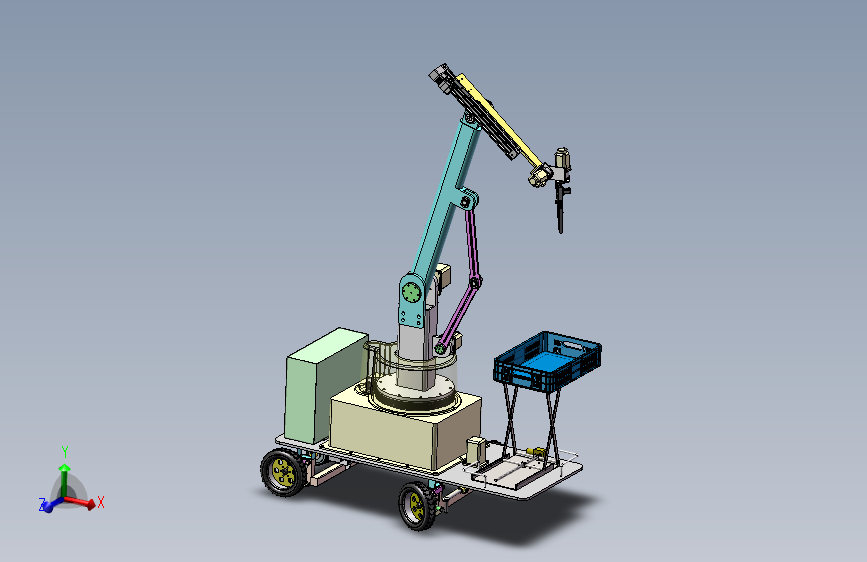 采摘机器人是一种用于自动化采摘水果的机器人设备。它可以代替人工采摘水果,提高生产效率,减轻劳动强度,并且能够保证水果的质量。模型为solidworks2022绘制