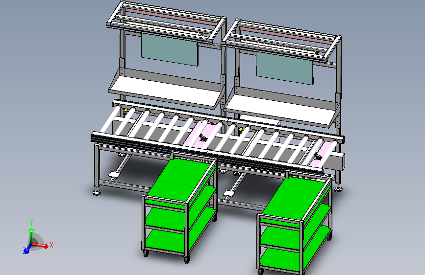 模块化双工位滚筒线,配备省力平衡臂安装滑轨,照明灯,显示屏,插排,托盘,离子风机等工具。上下层滚筒,配合升降机完成线体回流。拼接式安装,小巧灵活。可快速组装线体。