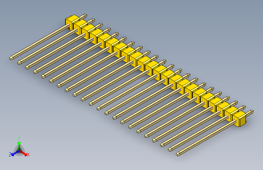 彩色公头100mil(2.54mm)系列-DS1021_yellow_1x22p_100mil_Type19_rev1.0(ID:1118600)