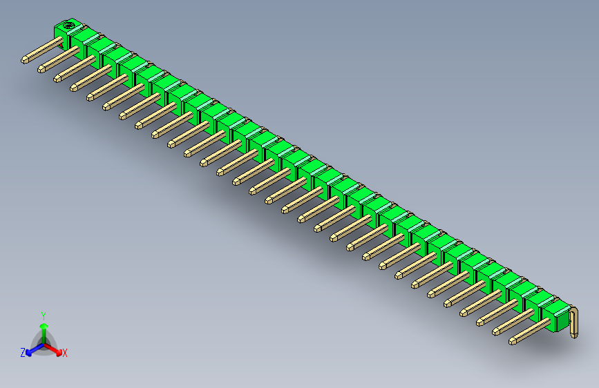 彩色公排针 100mil 2.54mm 系列-DS1022_green_1x31p_100mil_TypeD_rev1.0(ID:1120965)