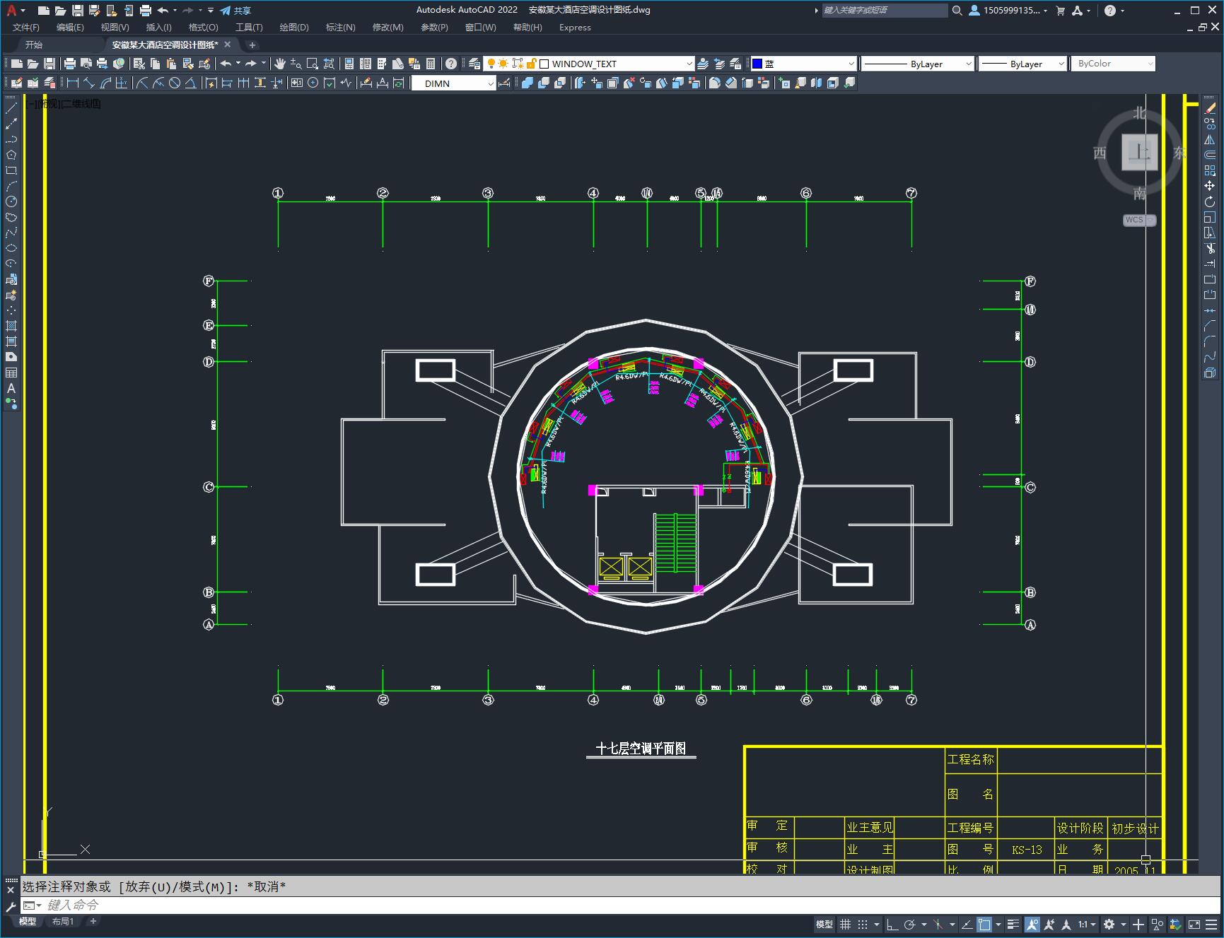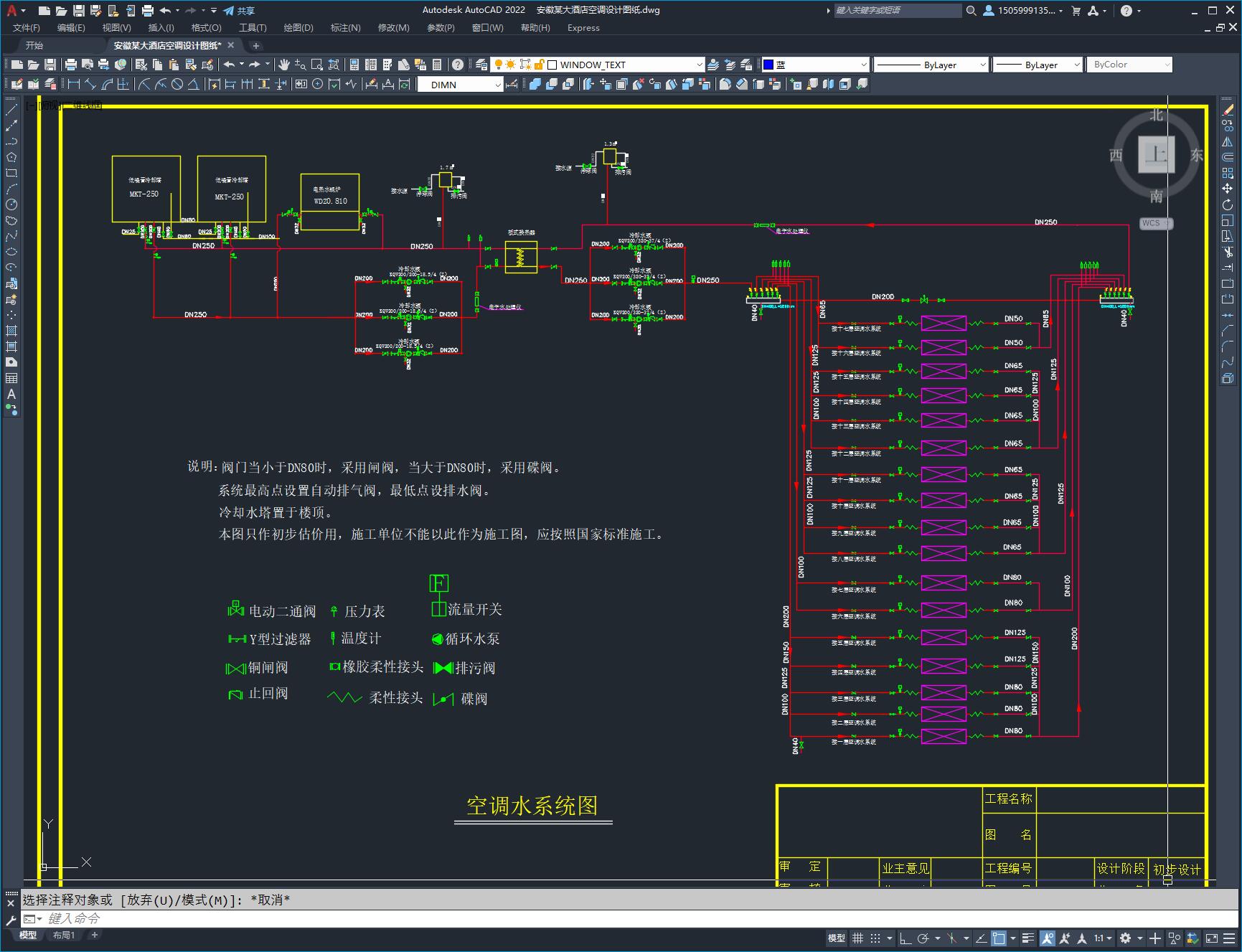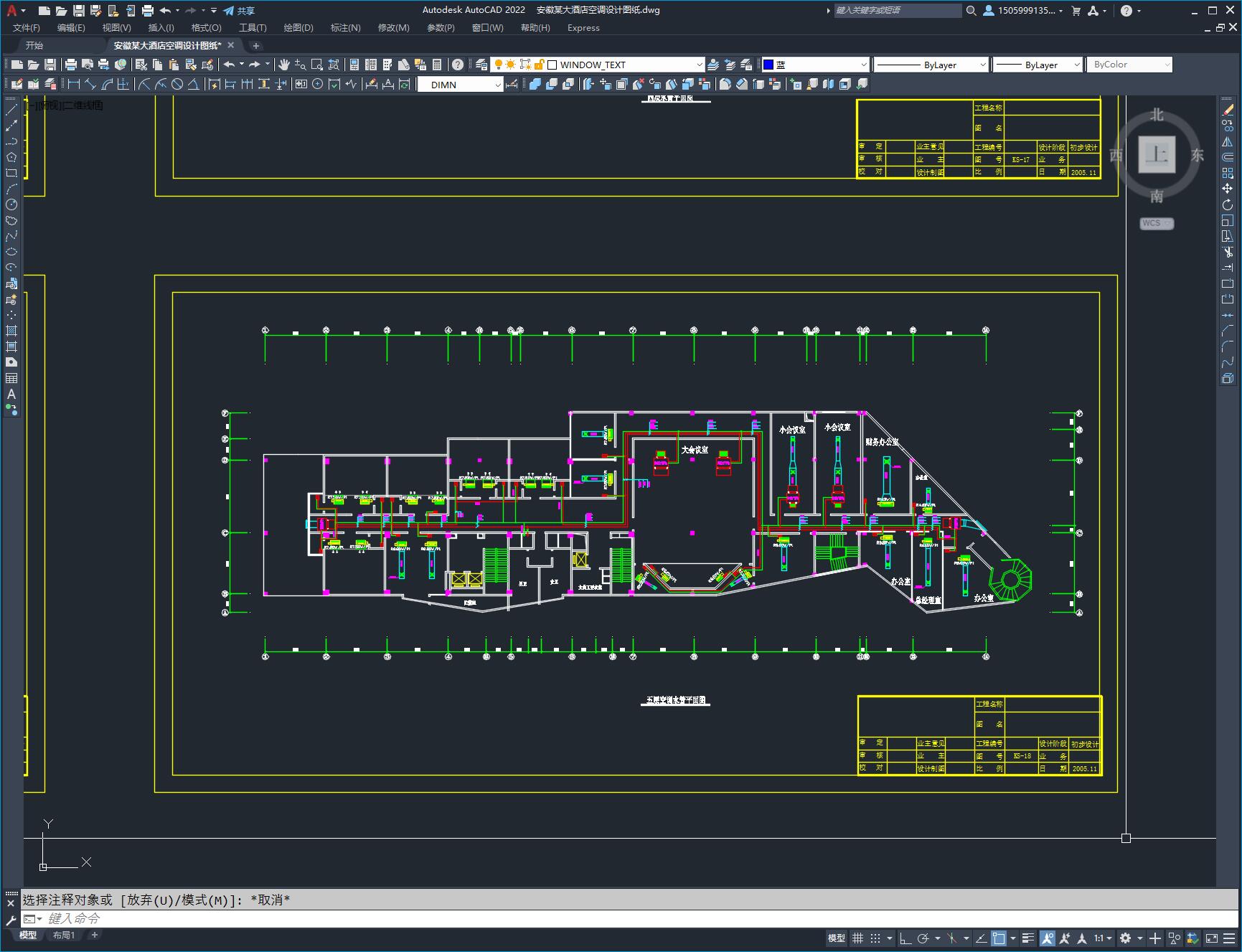 安徽某大酒店空调设计图纸,本建筑共17层,包括空调风管平面图,空调水管平面图,空调水系统图等。内容较为全面,在同类型的项目中参考价值较高,尺寸标注较为清晰。