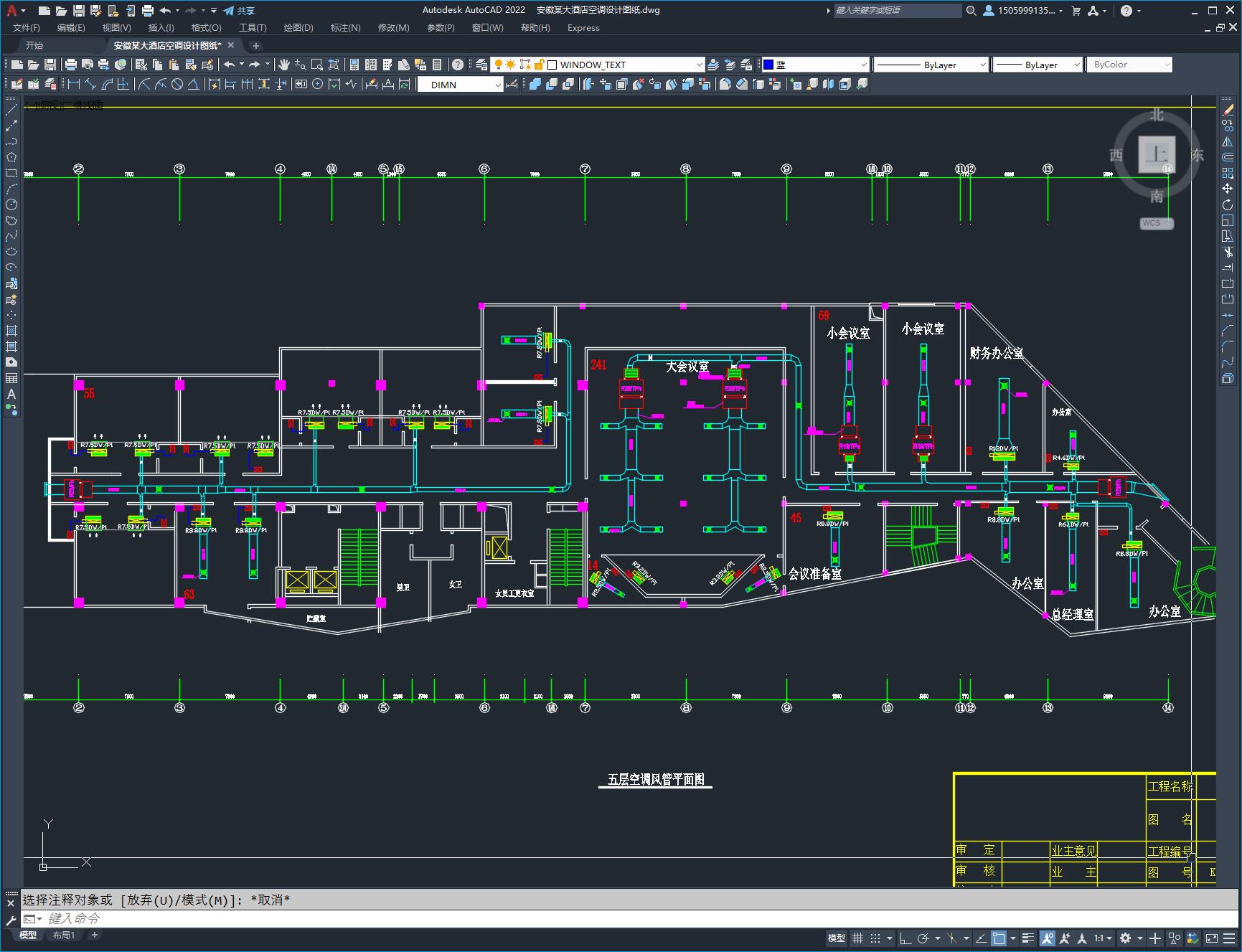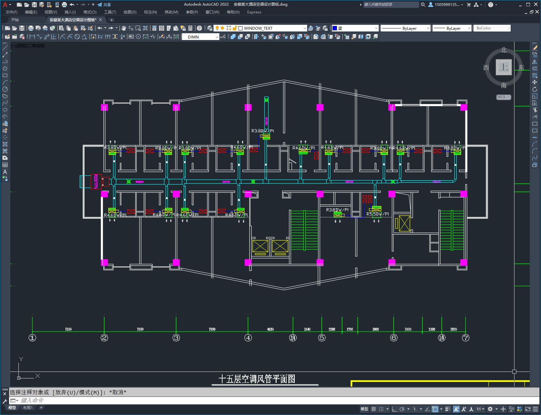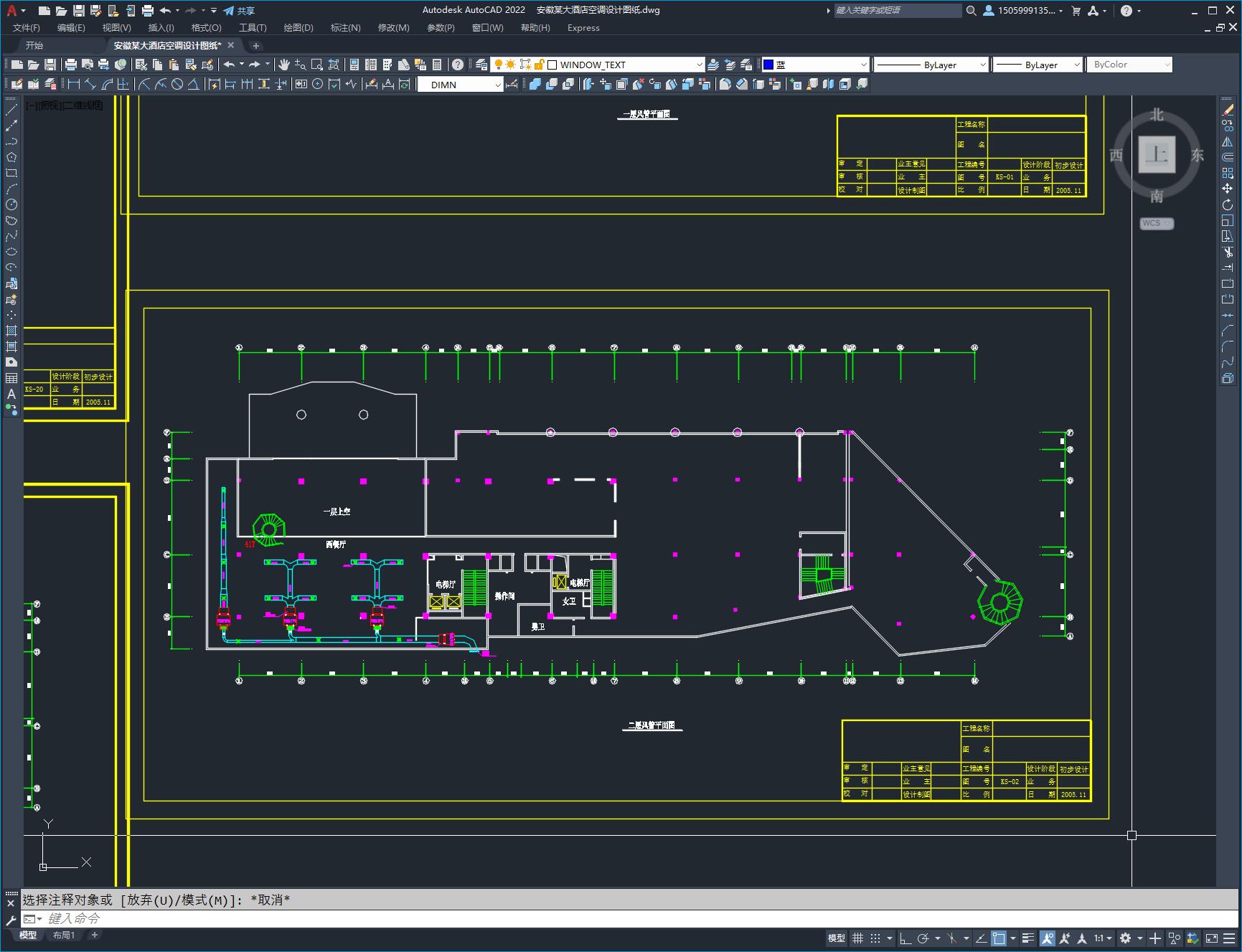 安徽某大酒店空调设计图纸,本建筑共17层,包括空调风管平面图,空调水管平面图,空调水系统图等。内容较为全面,在同类型的项目中参考价值较高,尺寸标注较为清晰。