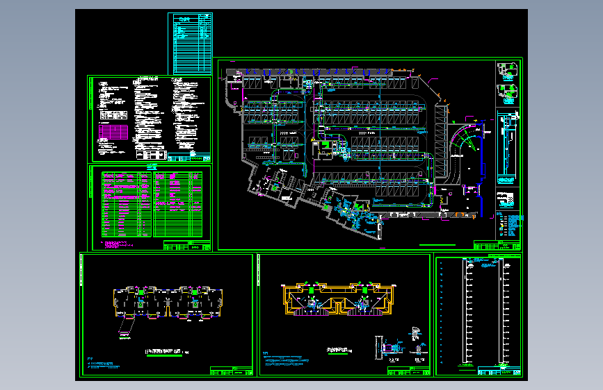 本工程为XXXX22#住宅楼.地下一层为车库、泵房与电房,地上十六层,均为住宅,建筑高度为53.050米,属于二类高层。本图纸为本栋楼与地下室的平时通风与防排烟设计。