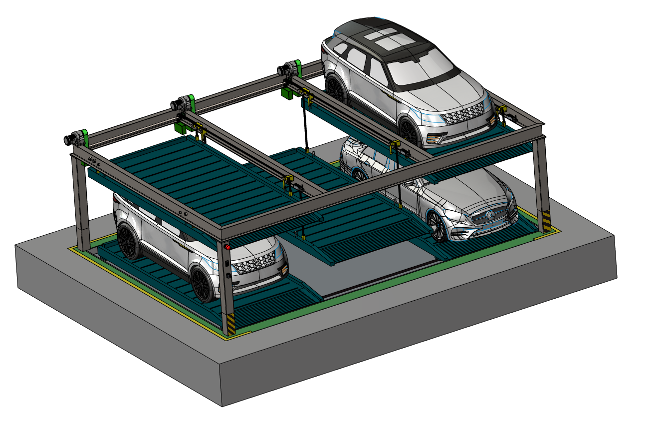 立体车库 ,也称为机械式停车设备、机械式立体停车库,它是利用钢结构作为主框架,配合升降和横移装置,以及控制系统组装而成,用来最大量存取储放车辆的机械或机械设备系统。是一种针对专业车场管理公司提高停车场容量、提高收益、增加停车费收入的有效工具。立体停车位向空间和地下建造是解决实际停车问题的一种有效办法。本图纸使用SolidWorks2021绘制,含参数,可编辑,包含通用格式和部分CAD图纸