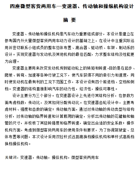 | 6 | 四座微型客货两用车—变速器、传动轴和操纵机构设计说明书.doc | 1.51M |