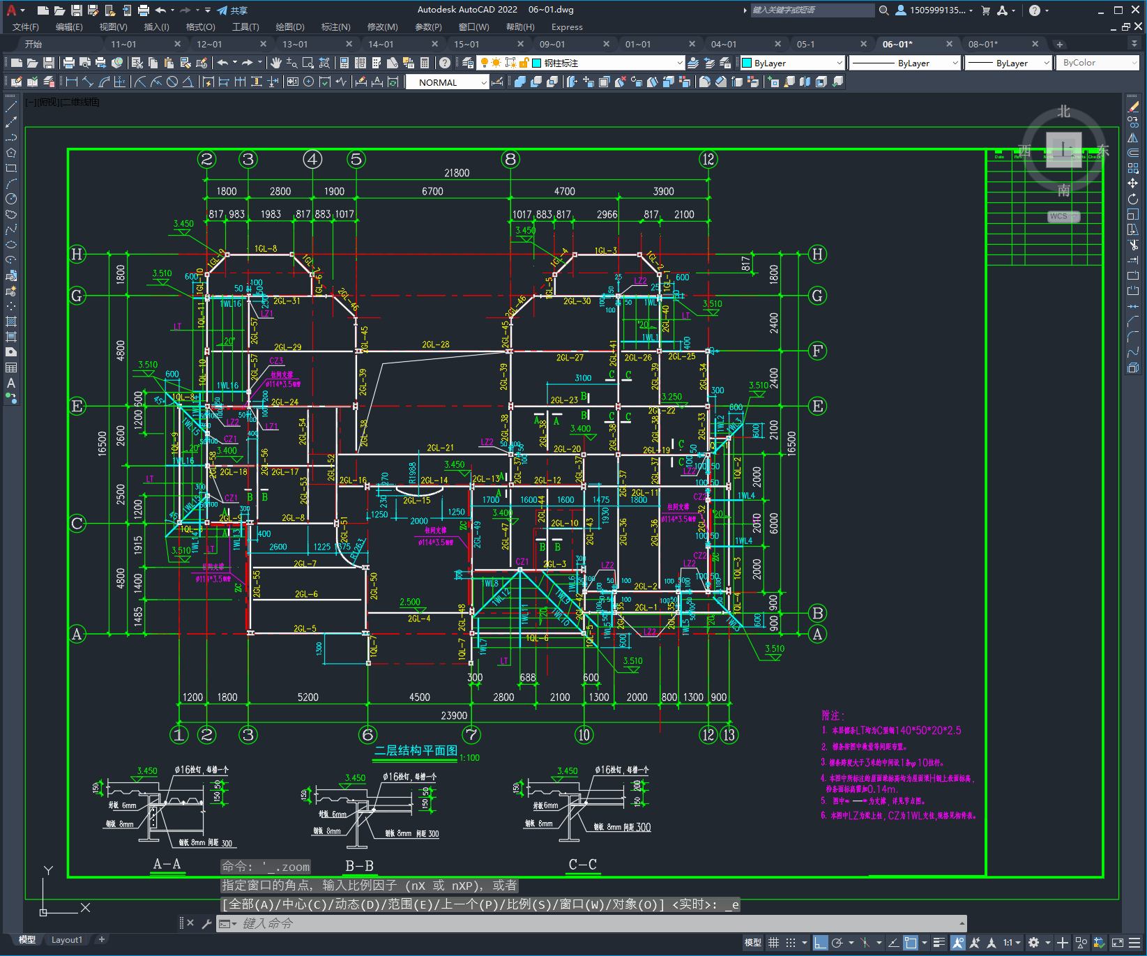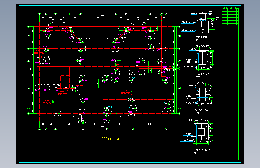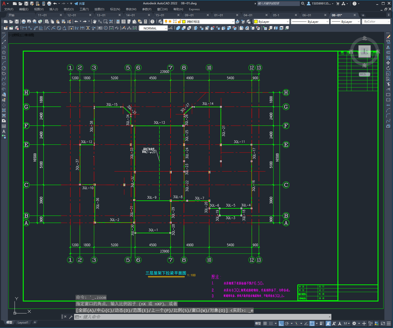 梁柱刚接节点 三层屋面结构平面图