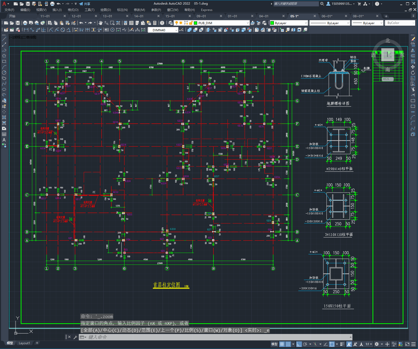 首层柱定位图 基础平面及配筋图