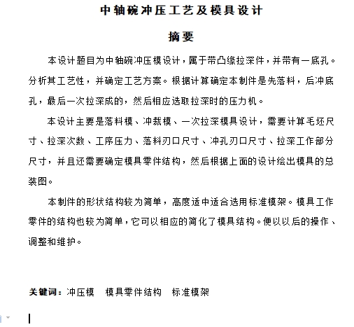 | 2 | C4010简介-带翻边形φ19底孔中轴碗的冲压工艺及模具设计-落料拉深冲孔复合模含16张CAD图.pdf | 1.34M |