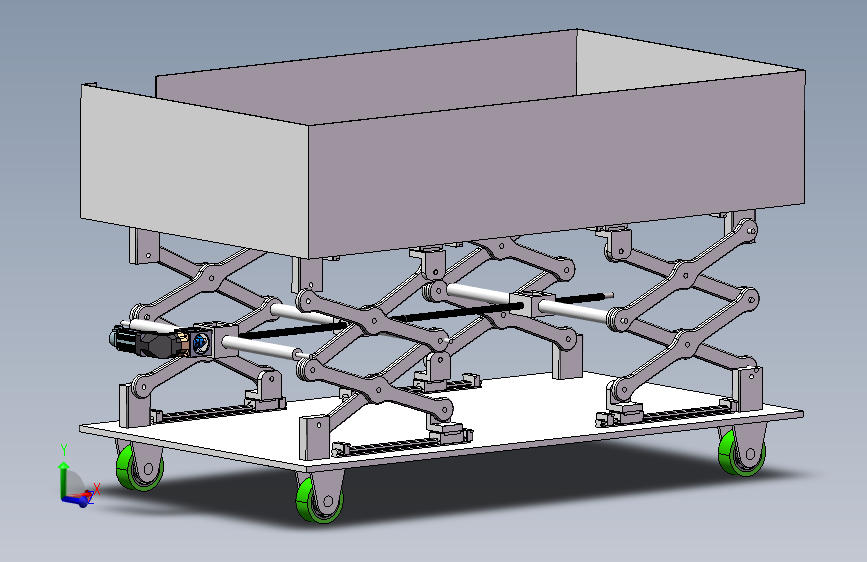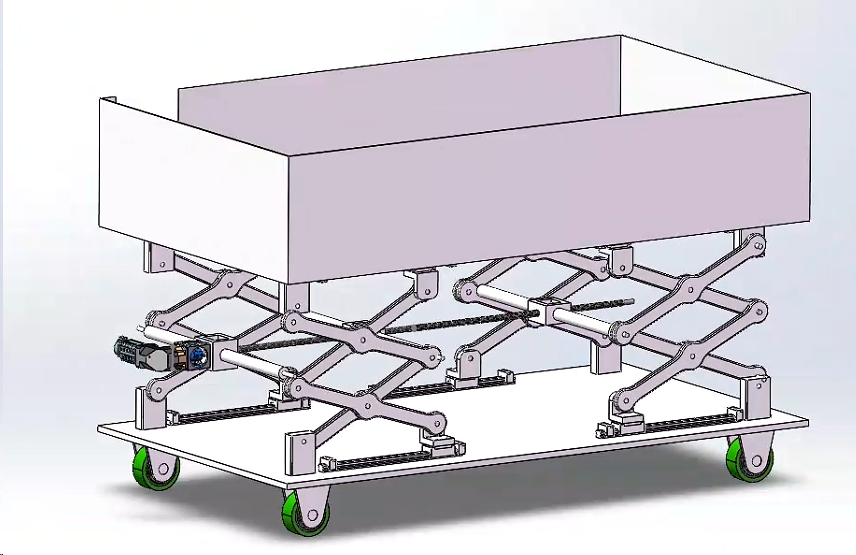 单电机双剪丝杆举升机设计,文件包含三维模型、dwg图纸。其中文档中含有机械传动计算、材料校核、强度校核等。工厂升降平台设计,可用于汽车维修,高层平台维修等使用场合