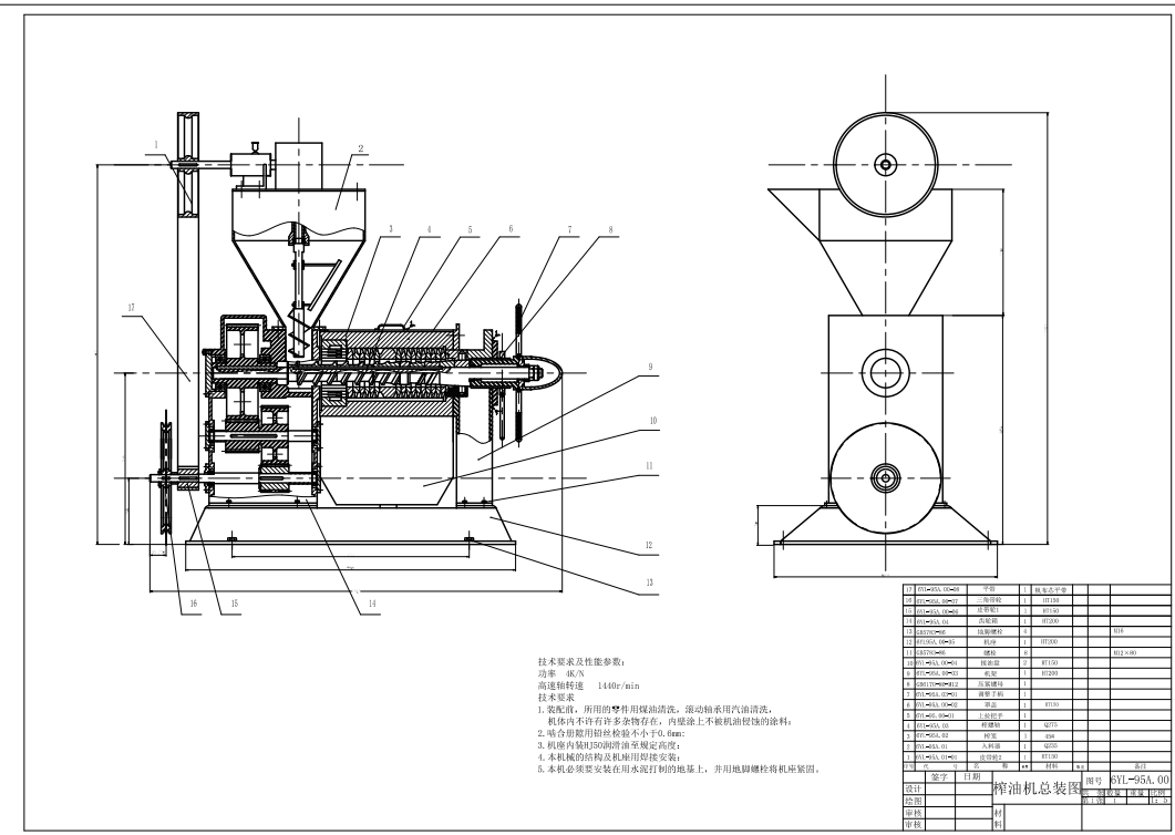 M1994-螺旋榨油机详细总装配图纸(ID:1563866)
