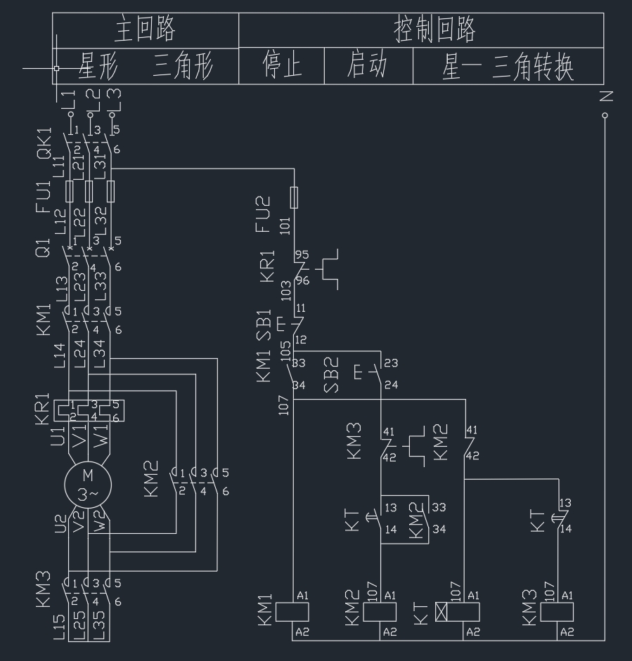 M6257-星三角启动cad图纸(ID:1581305)