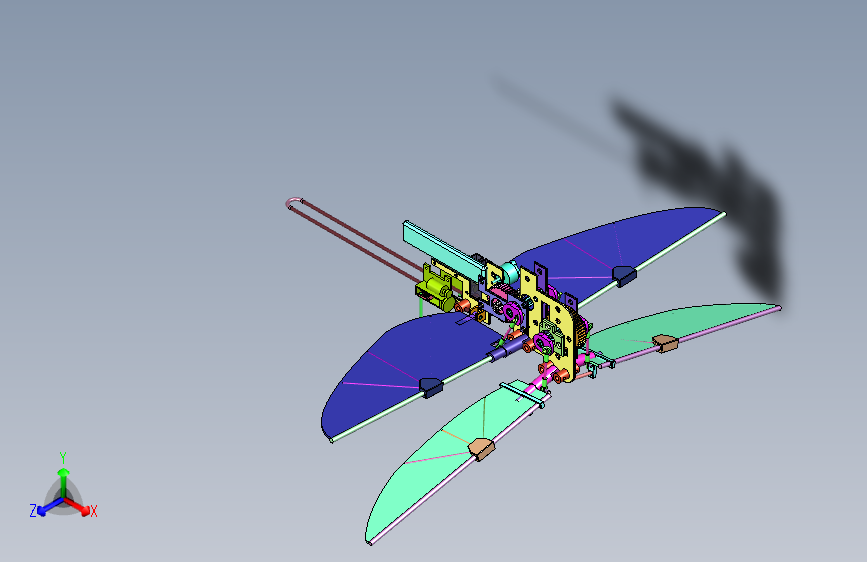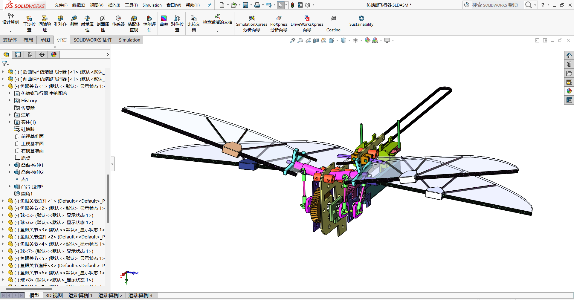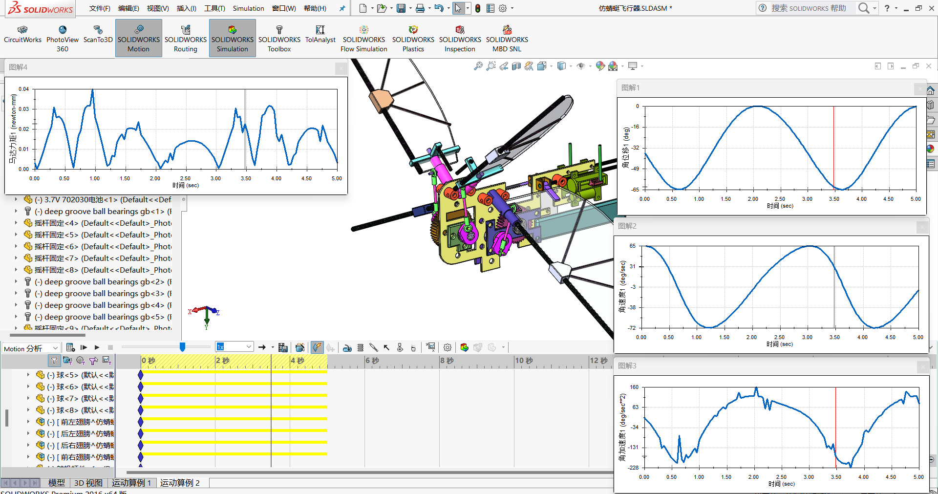 M5709-仿生蜻蜓仿生扑翼鸟翅膀(含动画仿真含三维SW2016带参(ID:1583628)