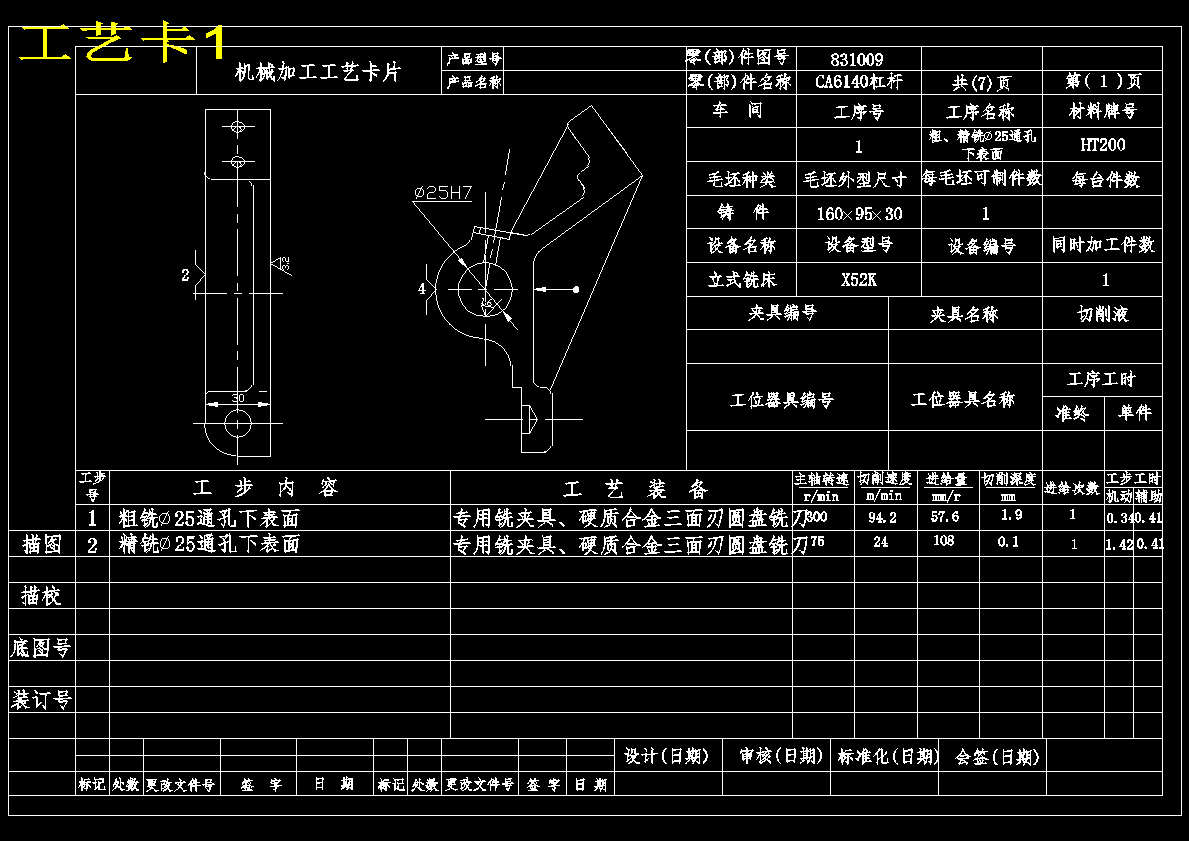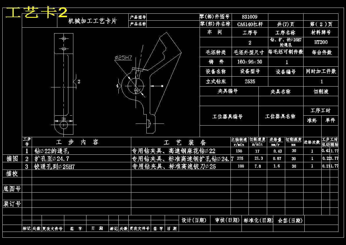 CA6140车床杠杆[831009] 加工工艺和钻φ25孔夹具设计(ID:1613069)