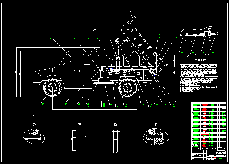 东风尖头140自卸汽车改装设计【9张CAD图纸】(ID:1615458)