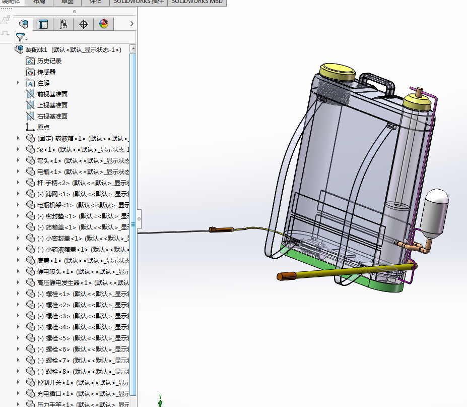 背负式静电喷雾机的设计【三维SW】【含5张CAD图纸】(ID:1622293)