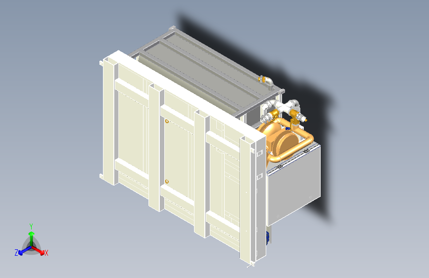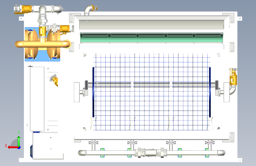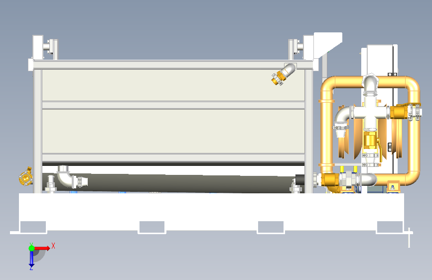 此三维模型为自动化浸涂池,主要用于全自动化砂芯浸涂,包含浸涂池以及加料池二部分,浸涂池包含搅拌装置、内部循环装置、溢流口、过滤网等装置,确保涂料不沉淀,保证涂料波密度