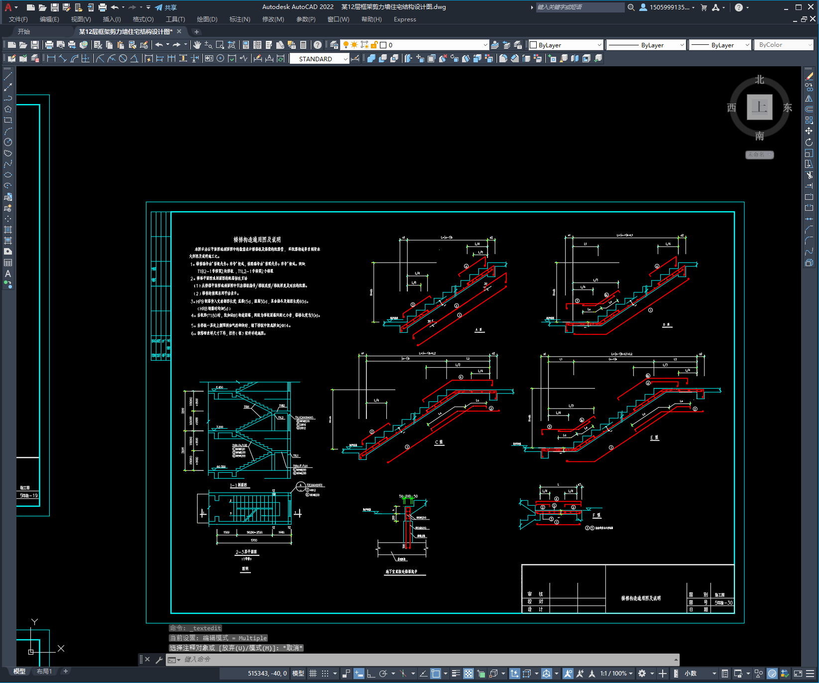 本次设计为:某12层框架剪力墙住宅结构设计图