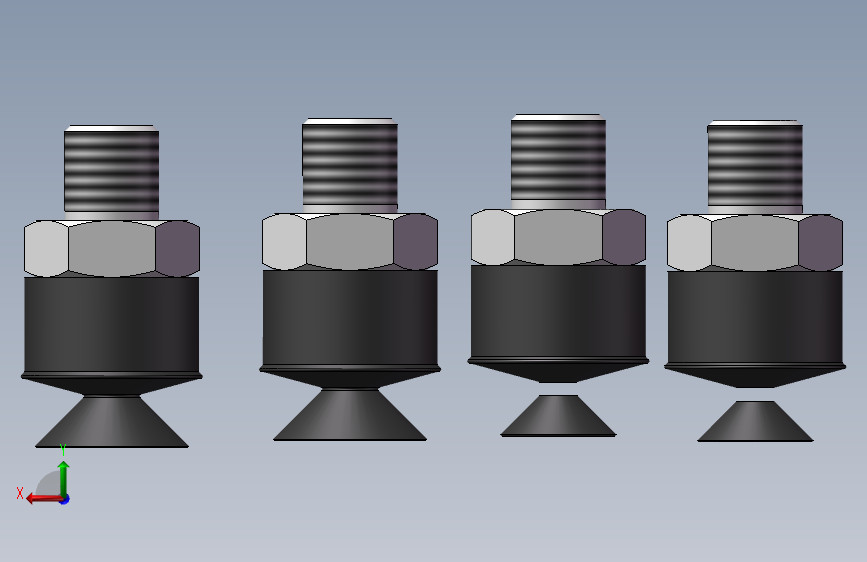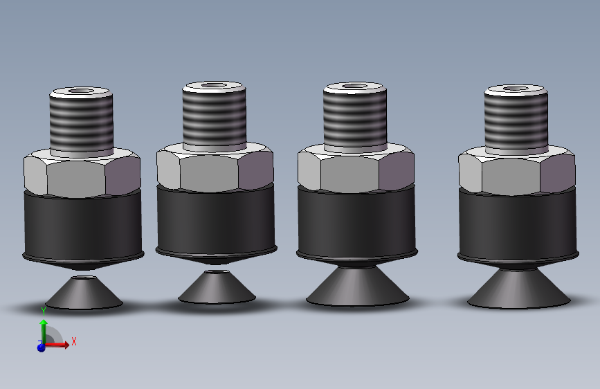 4款PS-J-M(φ6~φ8)真空吸盘模型 ,在实际生产中,如果要求吸盘具有耐油性,则可以考虑使用聚氨酯、丁腈橡胶或含乙烯基的聚合物等材料来制造吸盘。通常,为避免制品的表面被划伤,模型包含stp格式,