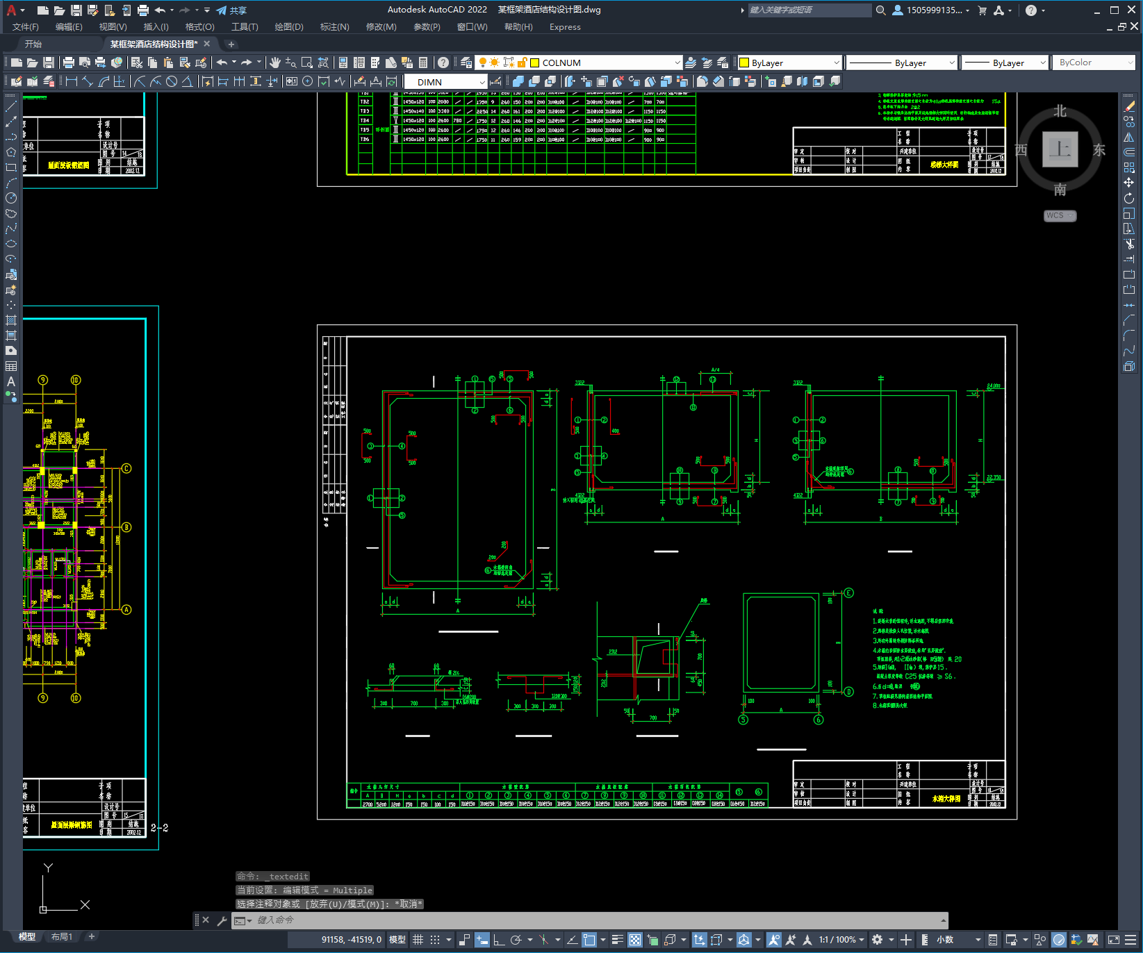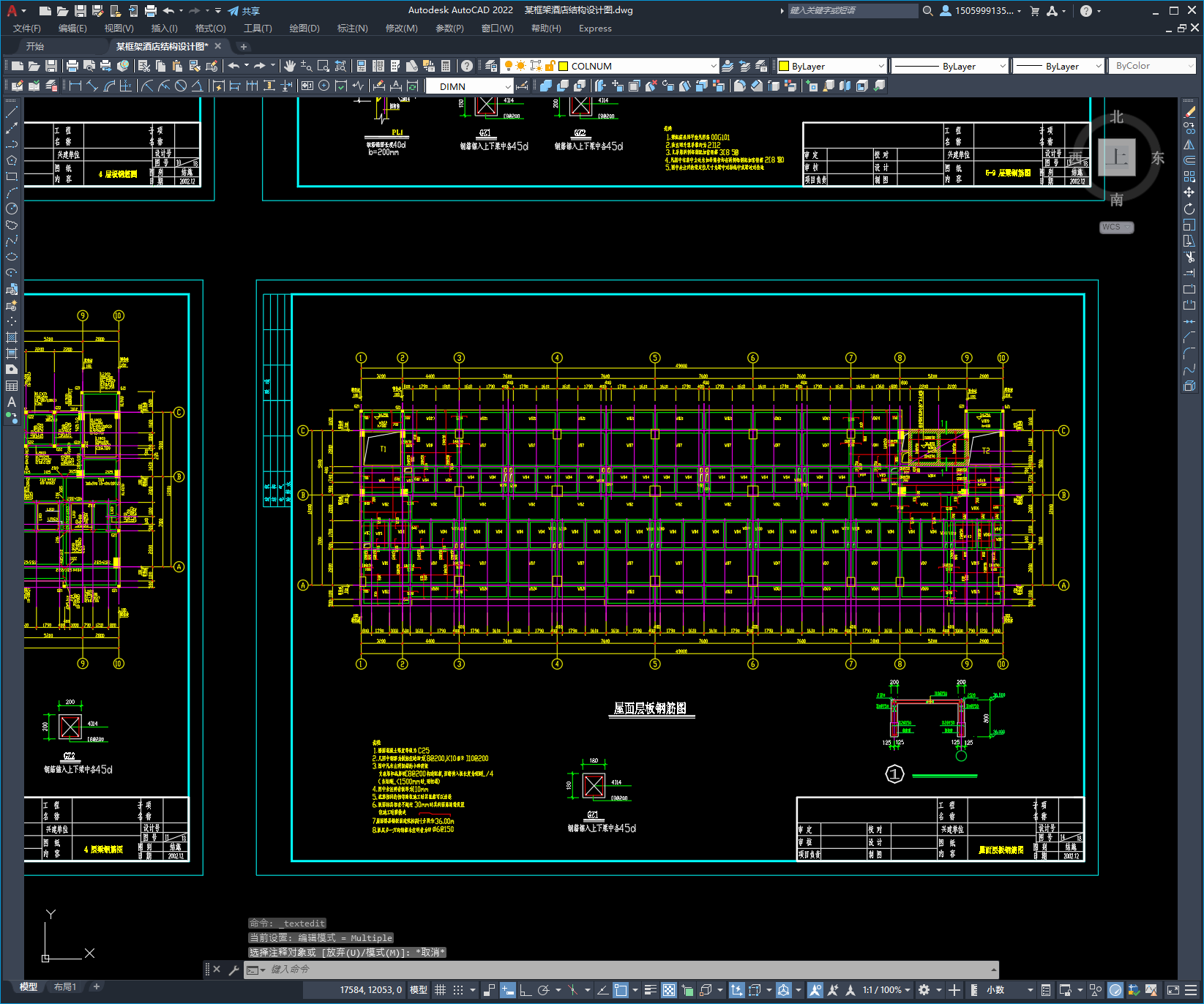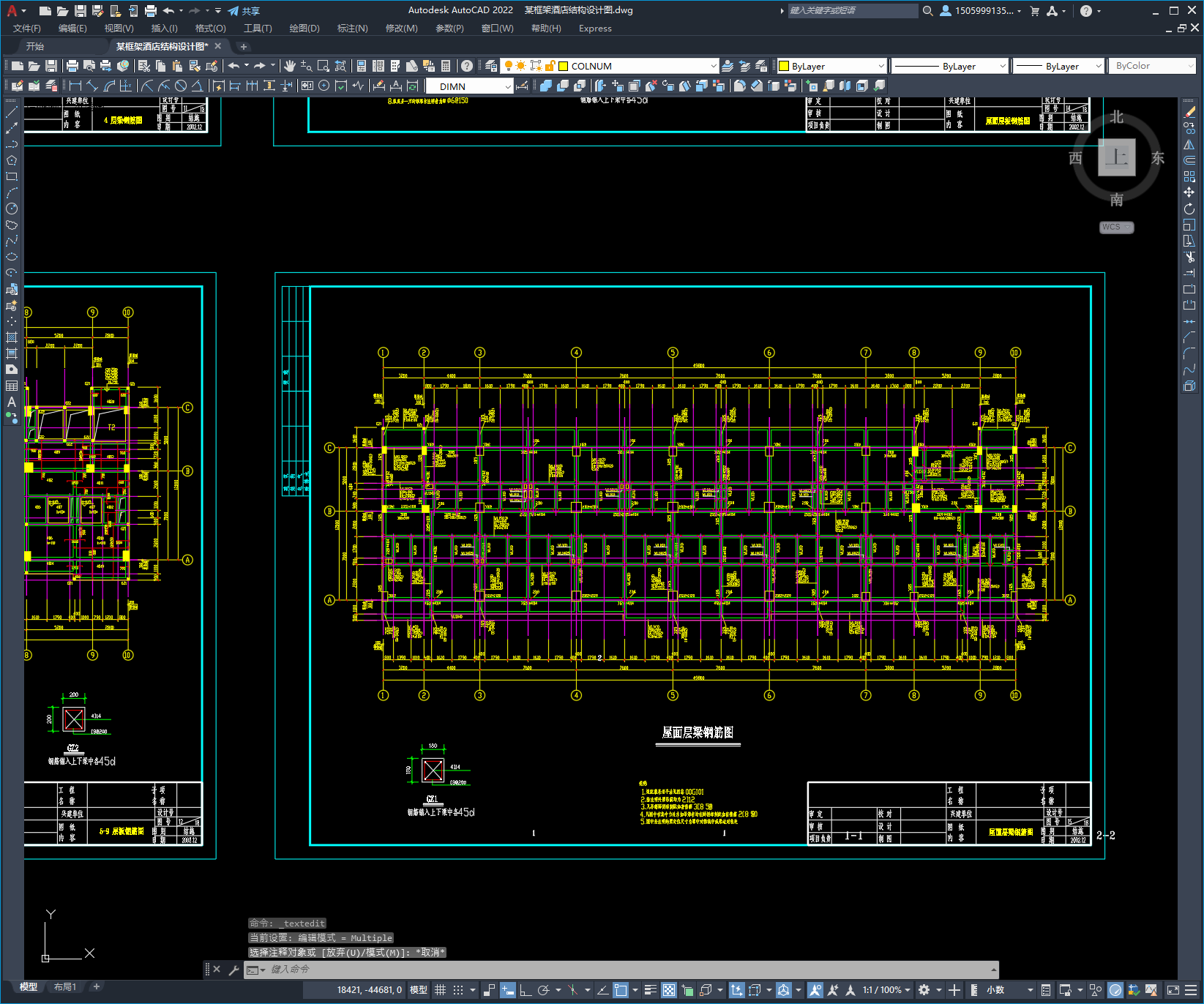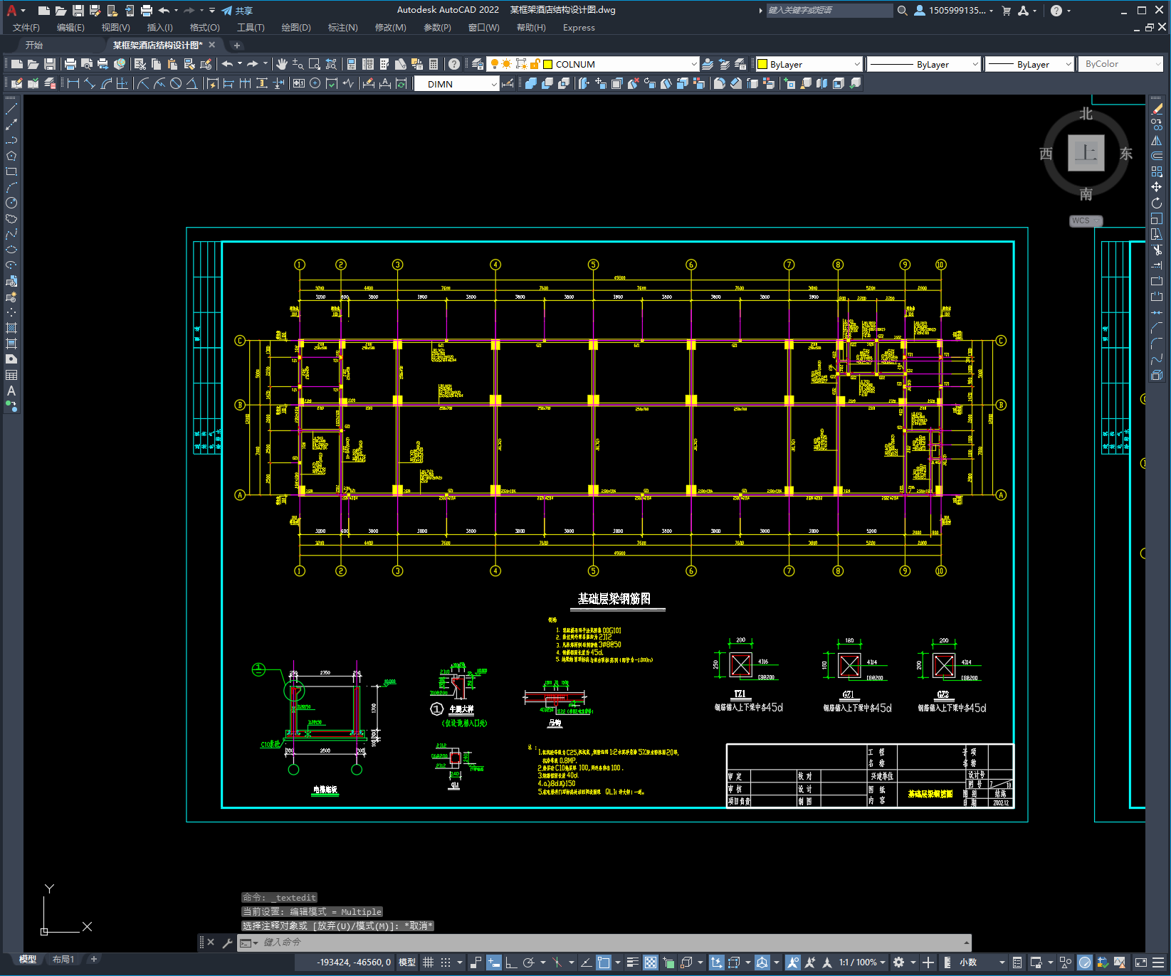 本次设计为:某框架酒店结构设计图