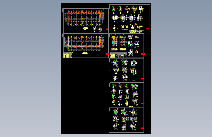 地脚螺栓平面布置图、底层结构平面图、屋面檩条、拉条布置图、屋面支撑系统布置图、墙檩布置图、刚架图、节点详图共131张图纸。