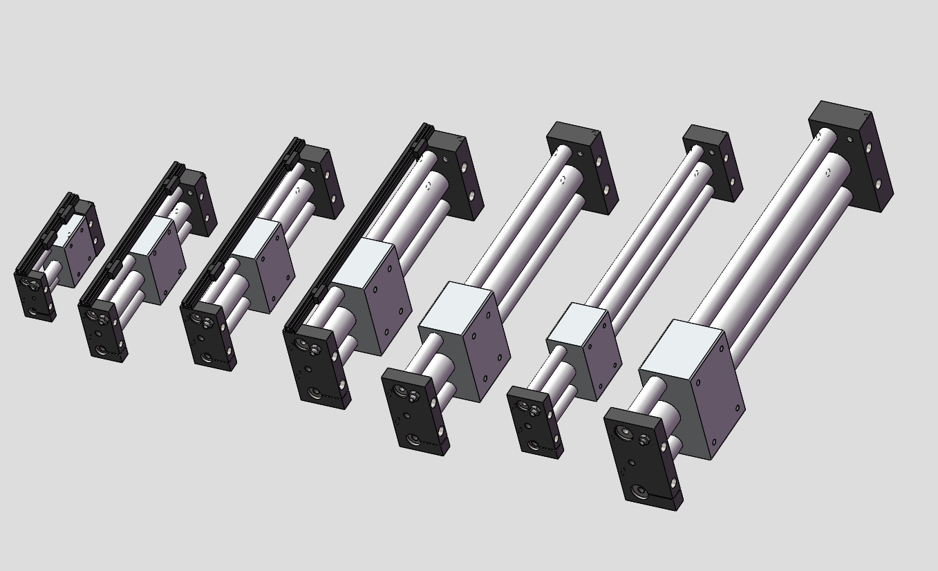 7款CY1S15•20•25•32•40无杆气缸模型 ,无杆气缸根据工作原理和结构特点,主要分为磁耦无杆气缸和机械式无杆气缸两大类。磁耦无杆气缸通过磁力耦合将活塞的运动传递给执行机构,而机械式无杆气缸则通过机械连接(如滑块、缆索等)实现这一过程。