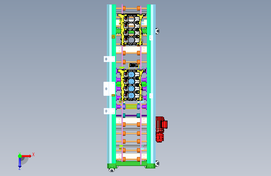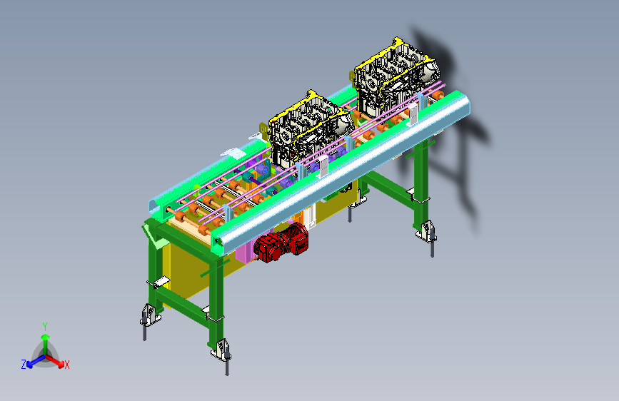 此三维模型为发动机缸体输送线模型,其中包含了缸体阻挡机构和缸体到位后顶升装置,用于精点位缸体,电机采用SEW品牌,是成熟产品,欢迎大家下载学习