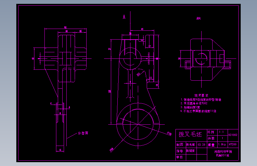CA6140车床拨叉831002的课程设计(夹具图,毛坯图,装配图都有)(ID:1874414)