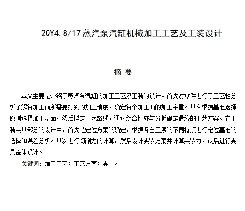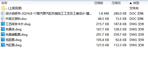 | 10 | 设计说明书-2QY4.8-17蒸汽泵汽缸机械加工工艺及工装设计-镗孔夹具.doc | 1.76M |