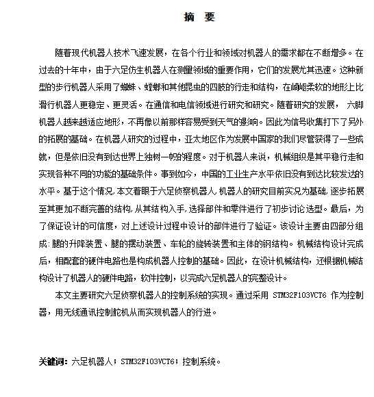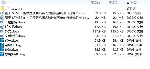 | 4 | 基于STM32的六足侦察机器人的控制系统的设计说明书.docx | 2.42M |