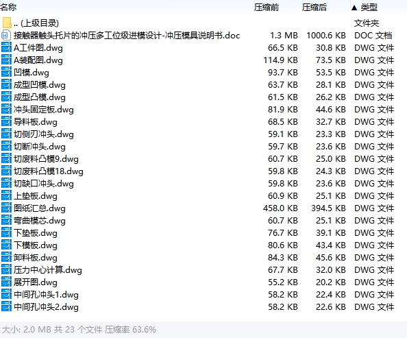 | 4 | X100简介-接触器触头托片的冲压多工位级进模设计-冲压模具含21张CAD图.pdf | 1.06M |