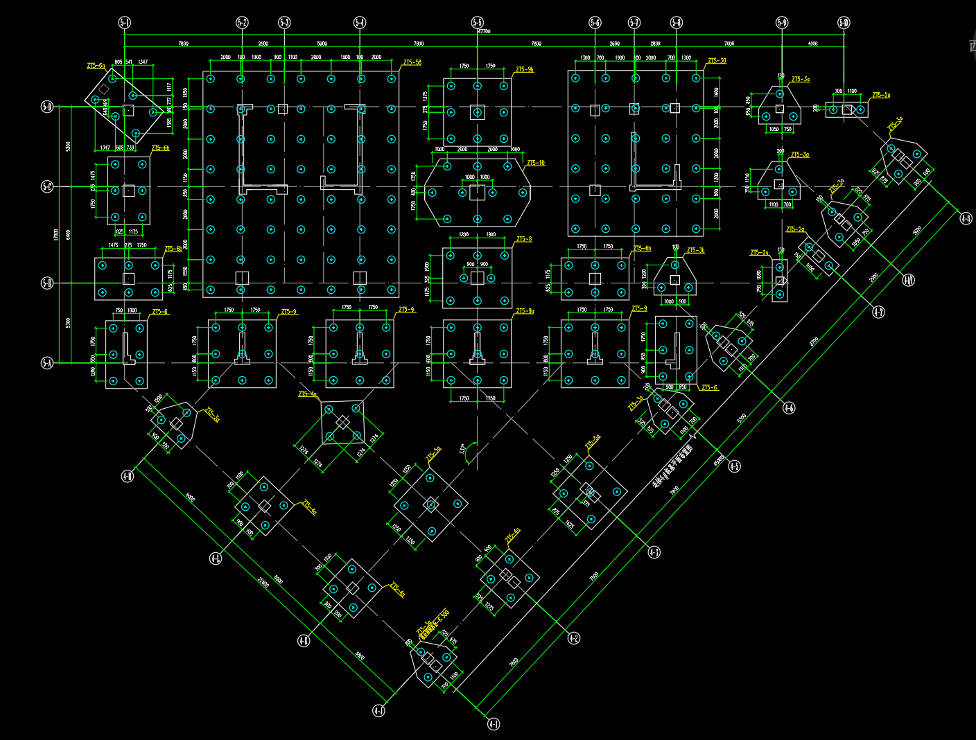 图纸包括:桩基平面布置图,承台配筋图,承台大样,地下室剪力墙、柱网平面布置图,各层剪力墙、柱网平面布置图,结构平面图,梁配筋图,楼梯详图等
