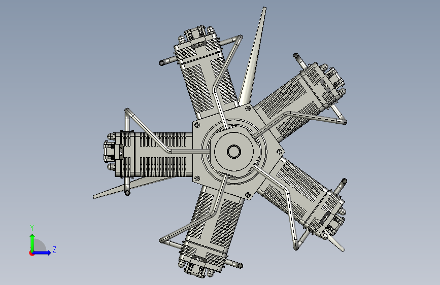 motor-radial 5缸星形发动机3D数模图纸 STP格式(ID:2014552)