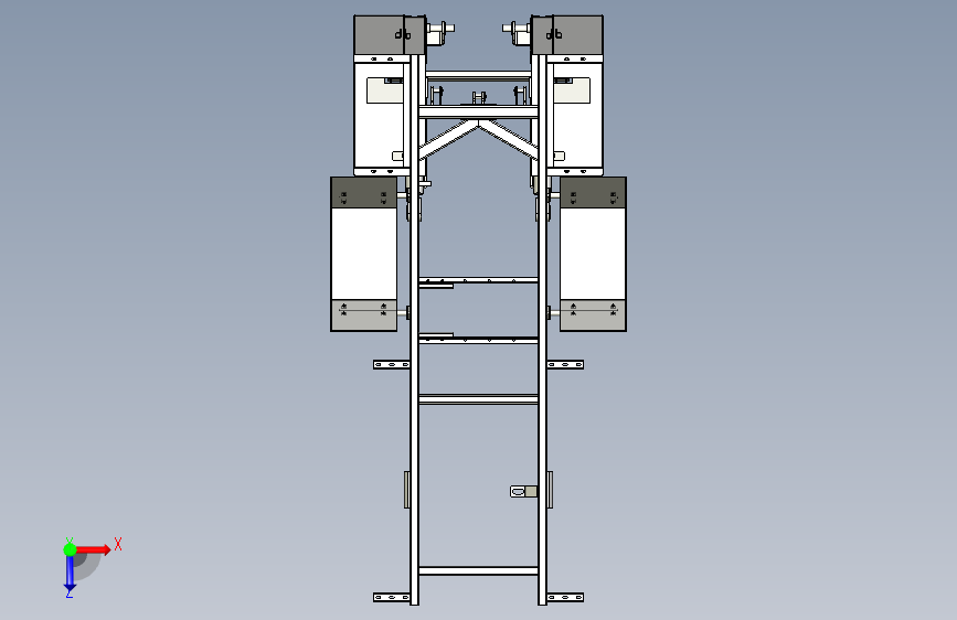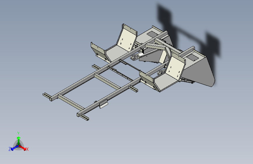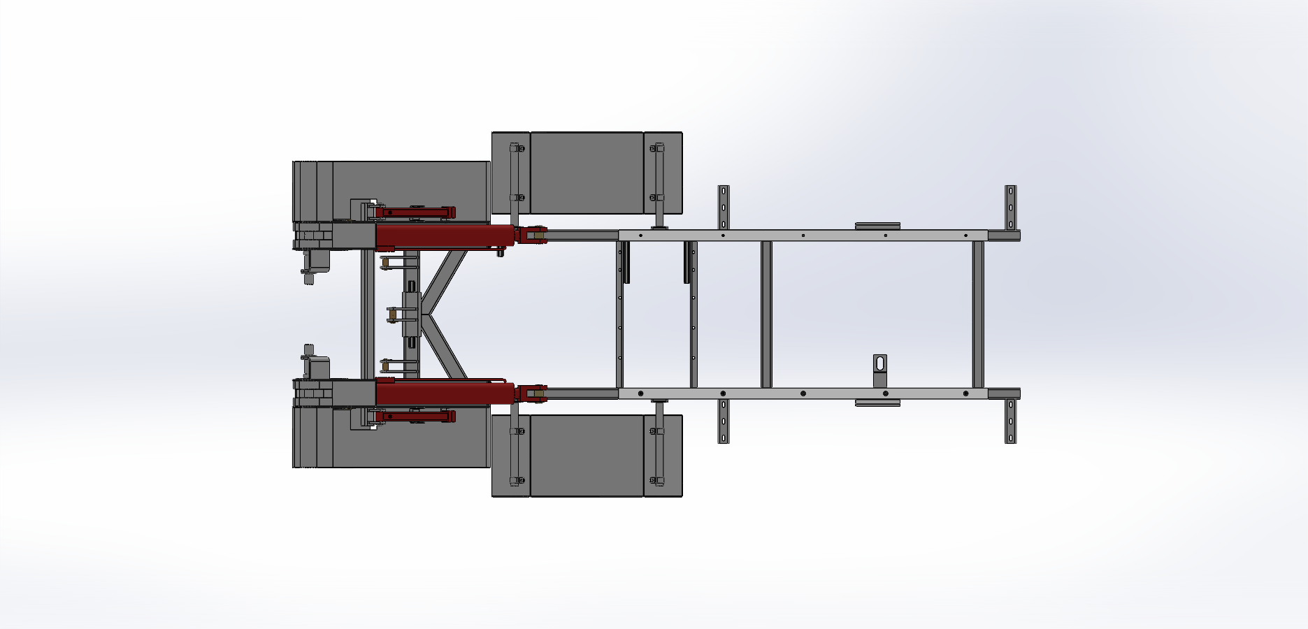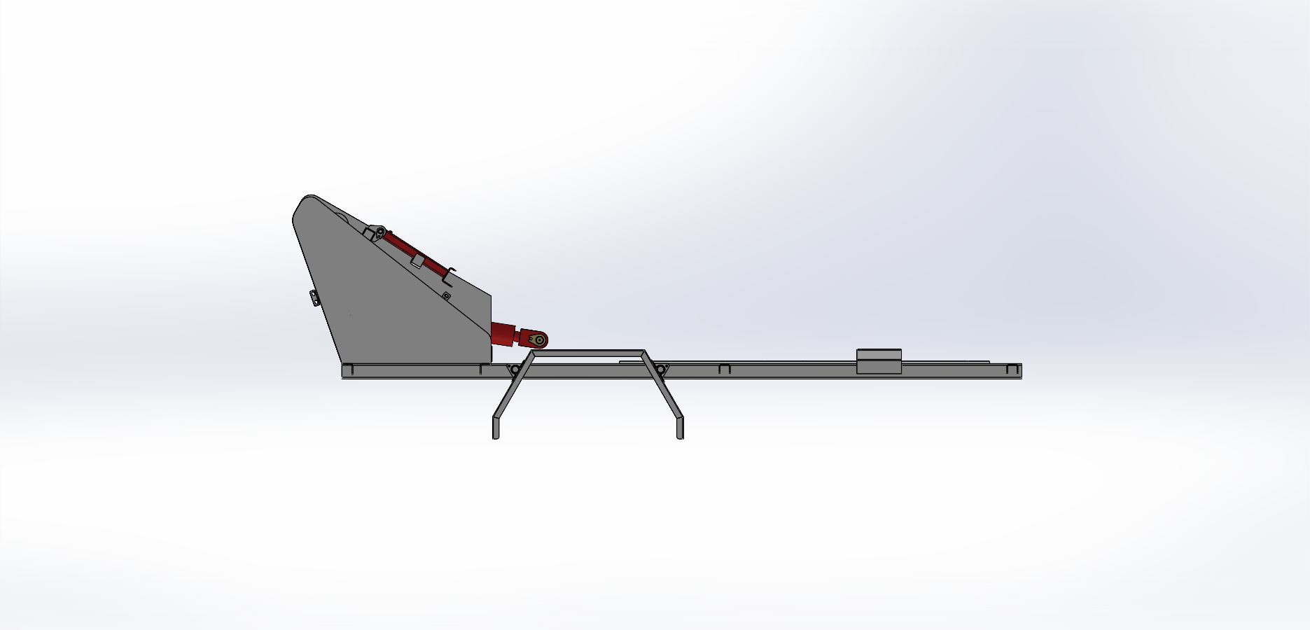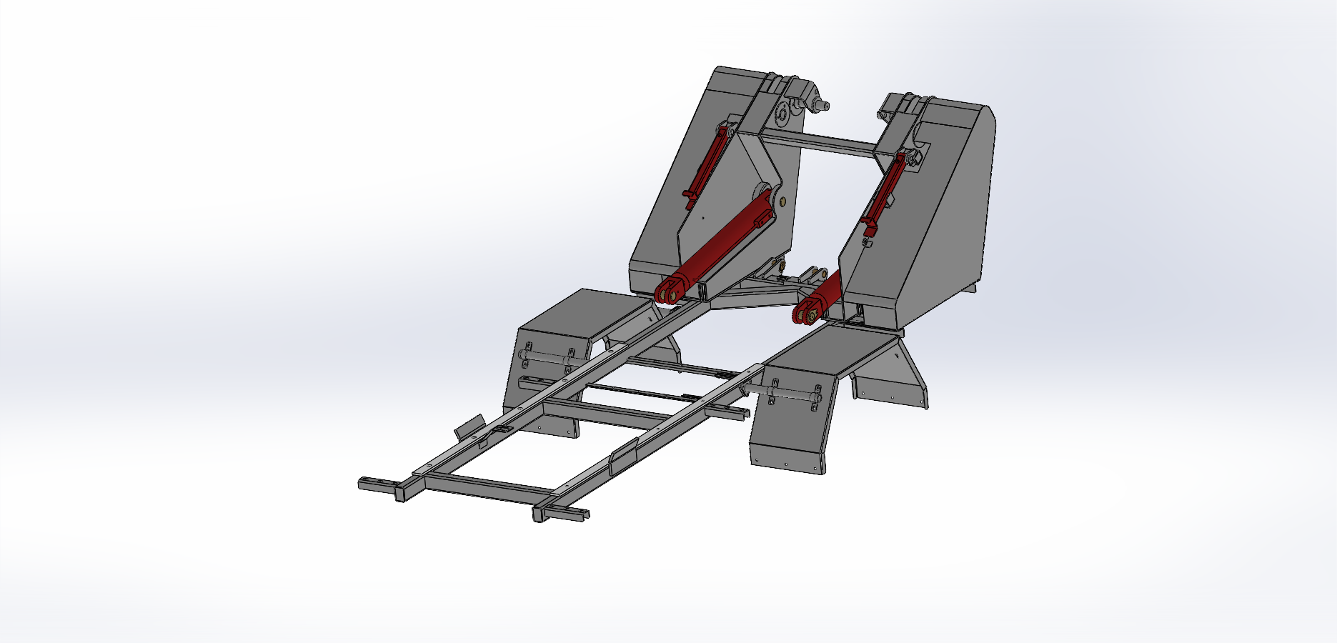 这款高位自卸式垃圾车车架总成,主体框架坚固,两侧配备支撑结构,内置红色液压装置,通过连杆联动实现举升自卸。底部纵梁强化承载,整体布局紧凑,既确保作业时的结构稳定性,又为垃圾高效倾卸提供可靠支撑,展现实用的机械设计逻辑。