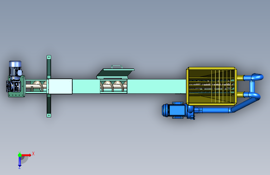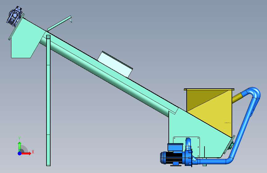 一款输送绞龙与循环泵相结合的水洗设备,既可以对含杂的固体物料(如大豆)进行表面清洗操作,又能够对易燃的固体物料(如煤块)进行表面加湿操作,具备较高的生产参考价值。