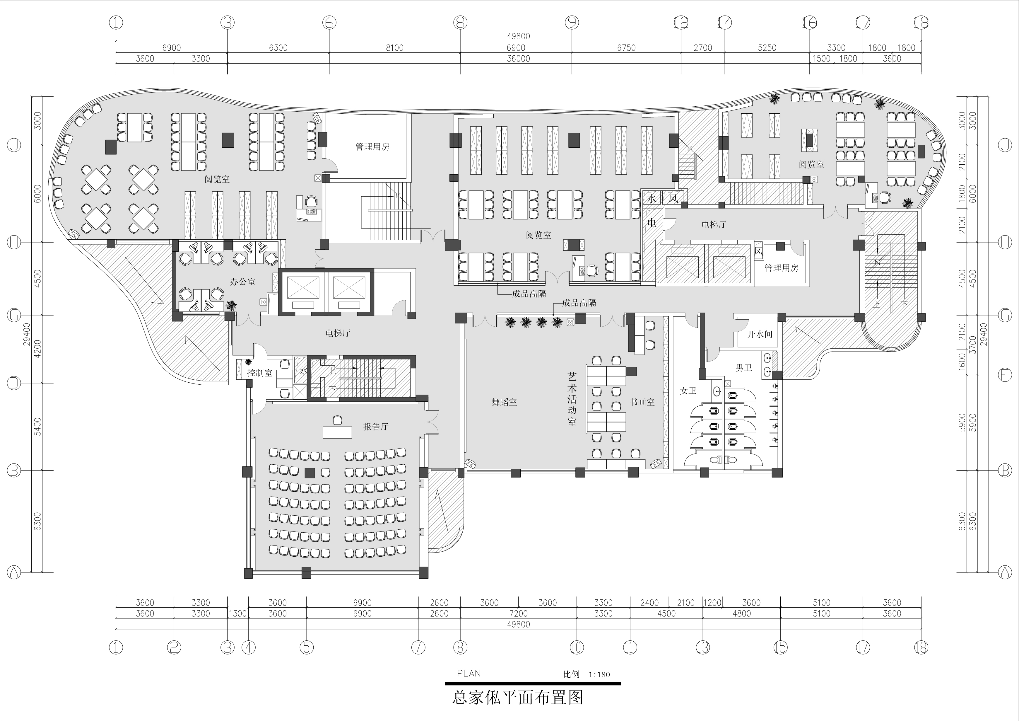 学校图书馆平面布局CAD(ID:2319464)